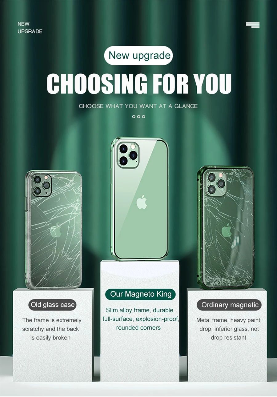 Особенности: двухсторонний стеклянный (Передний + черный) металлический магнитный чехол для iPhone Описание: 【Дизайн магнитной адсорбции и двухстороннее прозрачное закаленное стекло 】 2019 Новый Магнитный адсорбционный чехол для телефона использует многоточечную и сильную технологию адсорбции магнитного поля со встроенным магнитом окружает стеклянный корпус. 【 360 ° полная защита тела и алмазная резка Edge】 чехол для телефона 360 ° полная защита корпуса металлический каркас и жесткий дизайн из закаленного стекла поднятые рамки подъемный экран и камера с плоских поверхностей, упрочненная задняя часть из наностекла, защита от царапин и грязи, защита вашего телефона от царапин, ударов и пятен, высококачественные материалы обеспечивают непревзойденную защиту и повышенную долговечность. Алмазная кромка сделает чехол крутым и великолепным, что сделает ваш телефон другим. 【 Неблокирующий сигнал и поддержка беспроводной зарядки 】 Точные вырезы для динамиков, камеры, вспышки и других функциональных портов, которые позволяют легко получить доступ ко всем портам и функциям, не снимая чехол. Может поддерживать беспроводную зарядку и не блокировать сигнал сотового телефона, не снимая чехол, не легко поглощать тепло при зарядке из-за закаленного стекла.