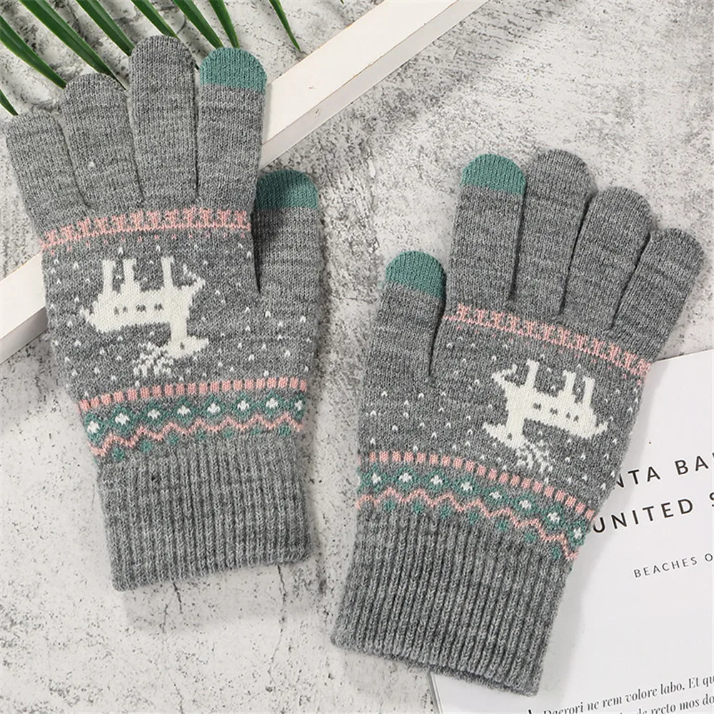 Милые Рождественские теплые женские зимние перчатки мужские перчатк...