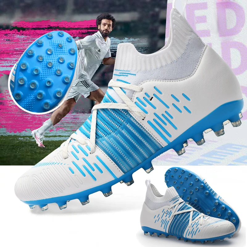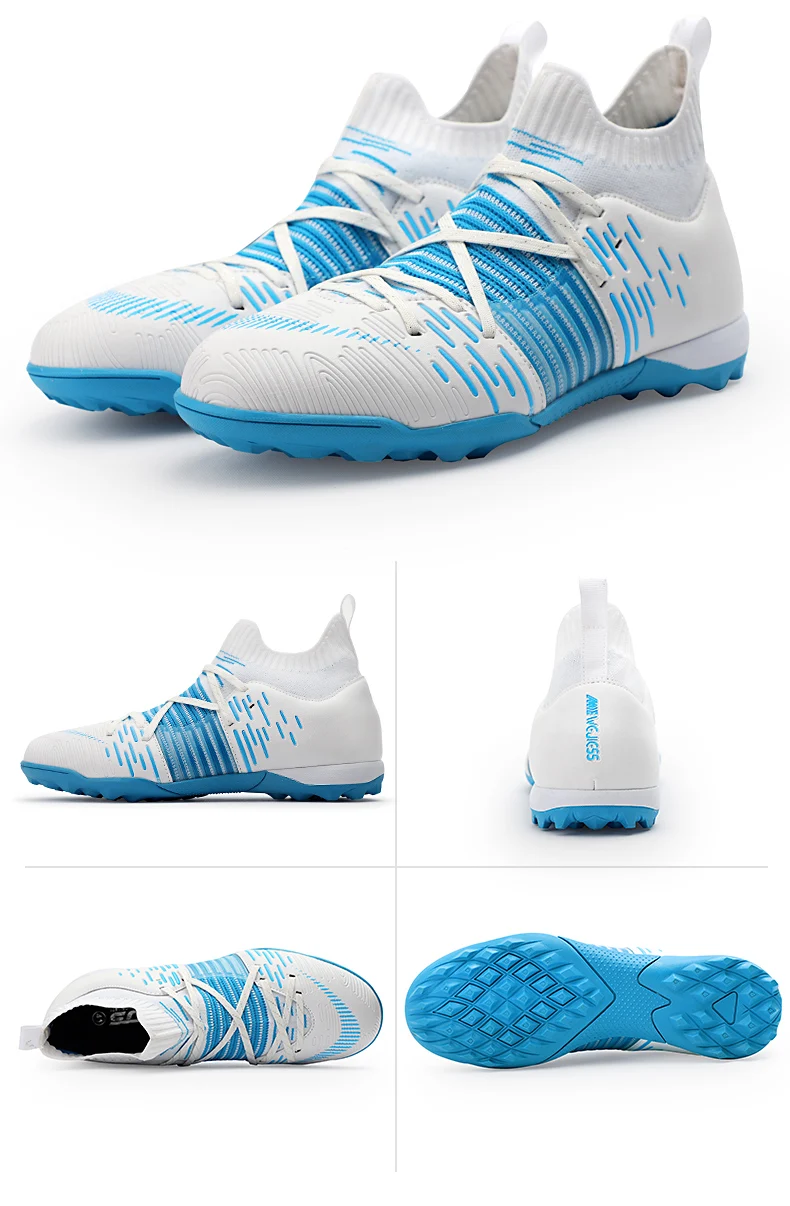 Уличная футбольная обувь, мужские синие дышащие высокие футбольные ...