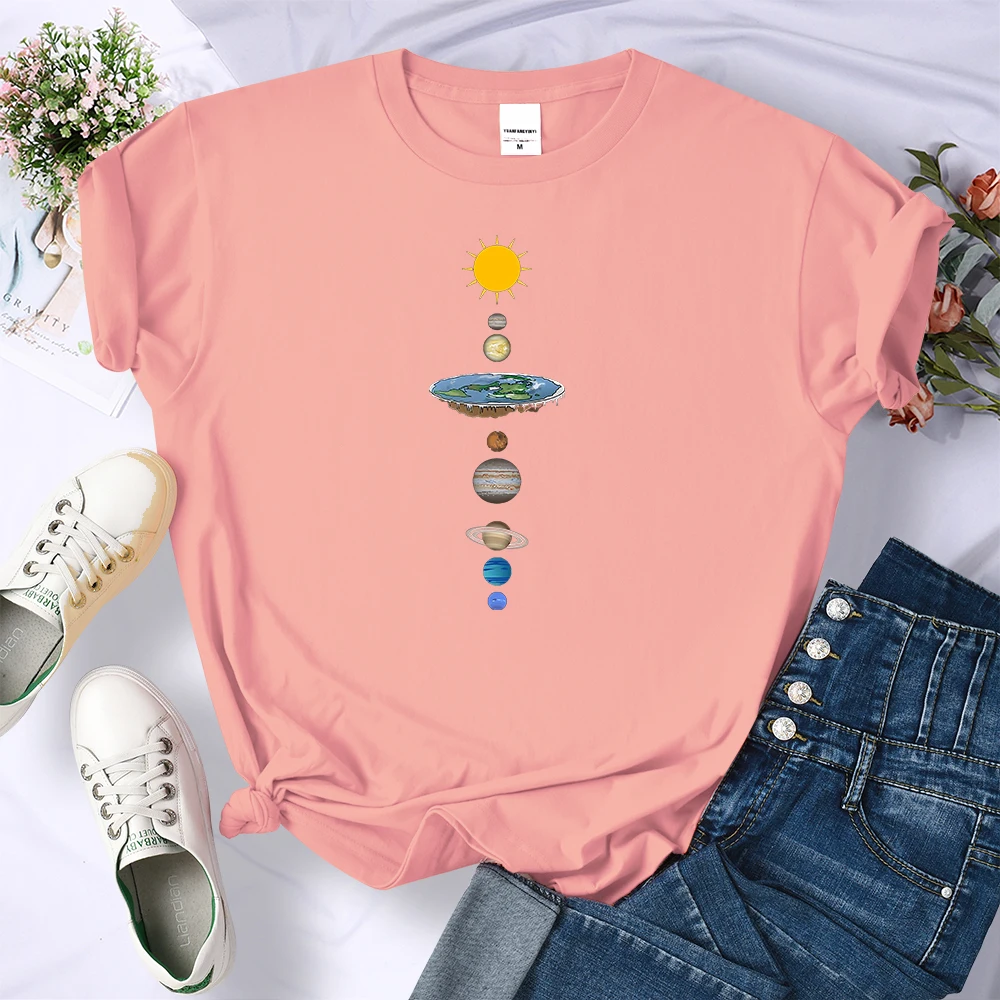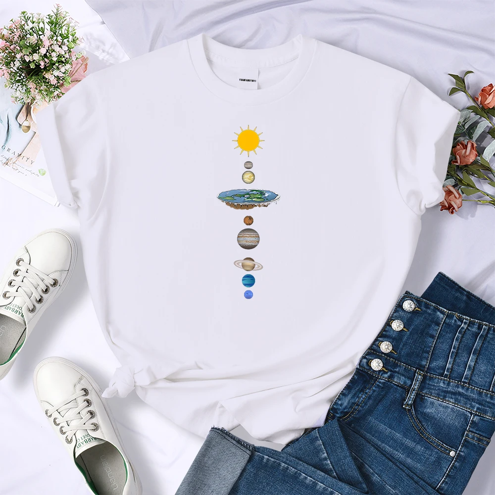 Футболка женская с принтом восьми планеты Солнечной системы, модная Свободная рубашка в стиле Харадзюку, с коротким рукавом, на лето