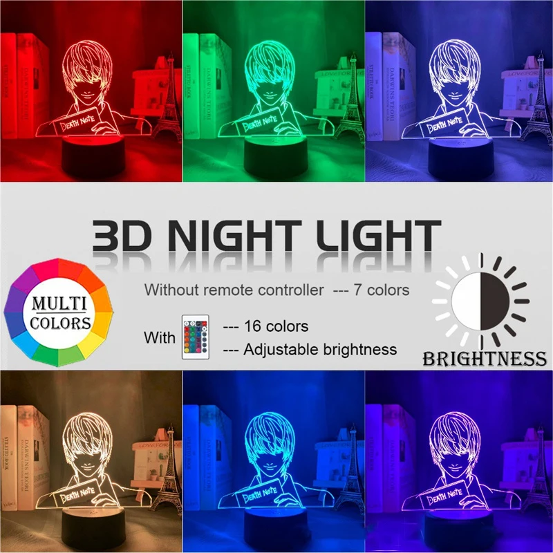 Классическая настольная 3d-лампа аниме Death Note, крутой светильник Yagami L, фигурка Lawliet, модель подставки, светодиодный ночсветильник для дома, манга, декор для комнаты