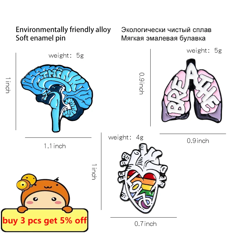 Женская Брошь с эмалью, значок на булавке в виде органа, сердца, лёгких, мозга, дыхания, медицинской анатомии, Ювелирное Украшение для врачей, медсестер