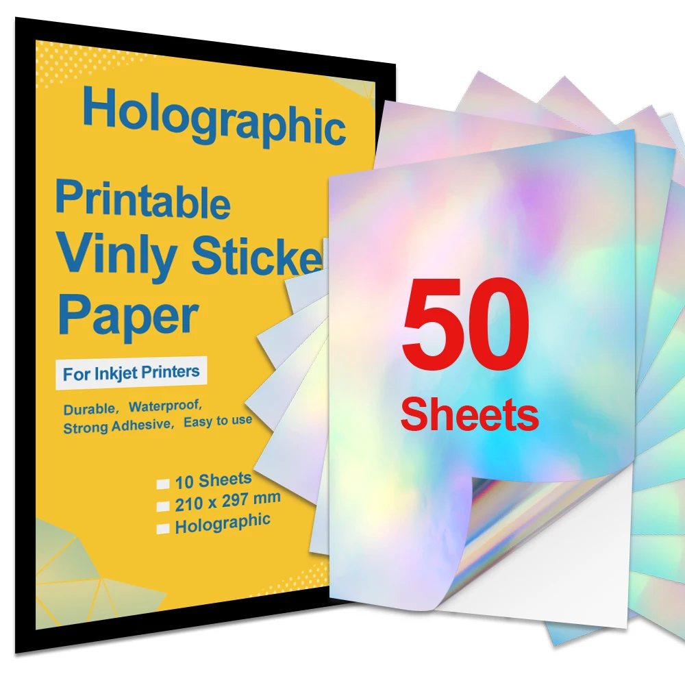 Лазерная бумага, голографическая бумага, наклейка, A4 печатная этикетка, наклейка, серебряная бумага, самоклеящаяся, сделай сам, для струйного принтера 50u