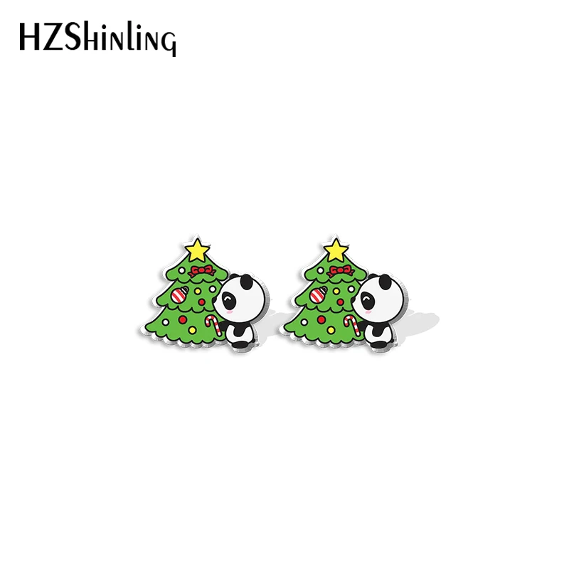 2021 Счастливого Рождества панда мультфильм аниме Узор Акриловые серьги-гвоздики Смола эпоксидные уши ювелирные изделия