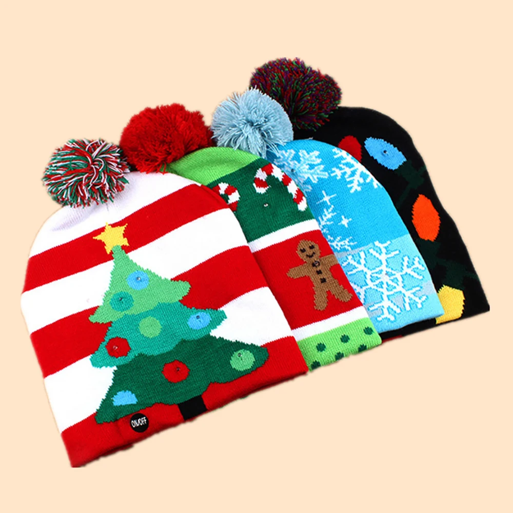 Светодиодная рождественская шапка, свитер, вязаная шапка со светящимся рисунком, рождественский подарок для детей, новогоднее рождественское украшение, теплая шапка