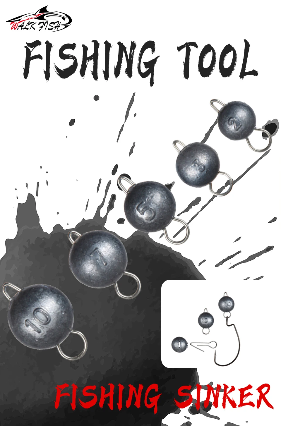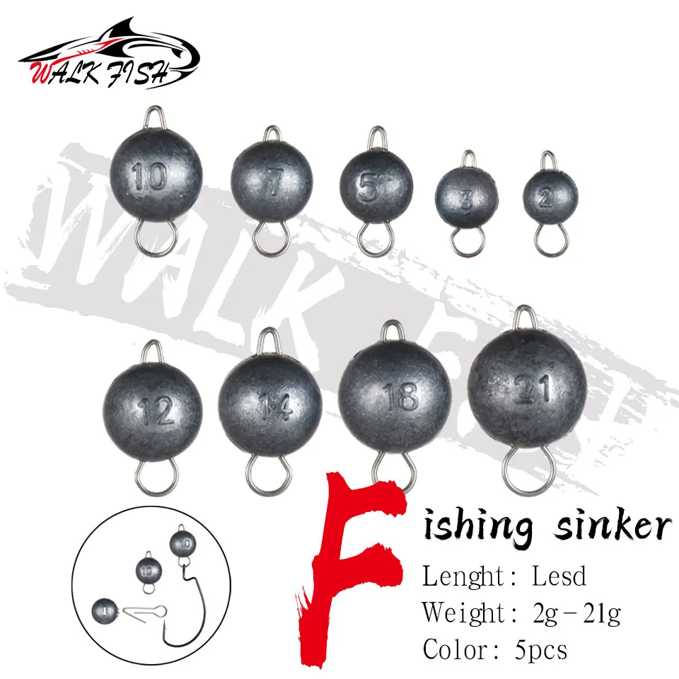 WALK FISH 5 шт. рыболовная грузилка, свинцовый крючок, вес 2 г-21 г, свинцовая головка, глубокая водяная пуля, мягкие приманки, рыболовные аксессуары