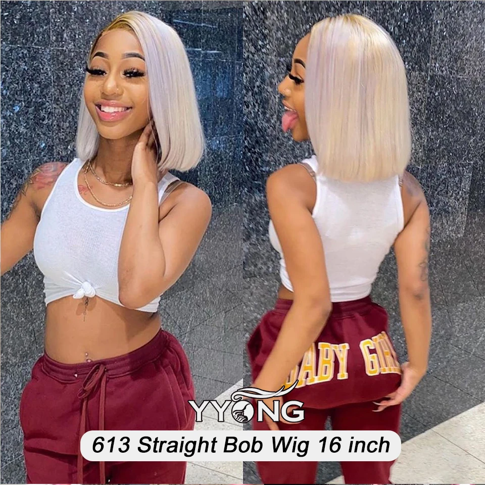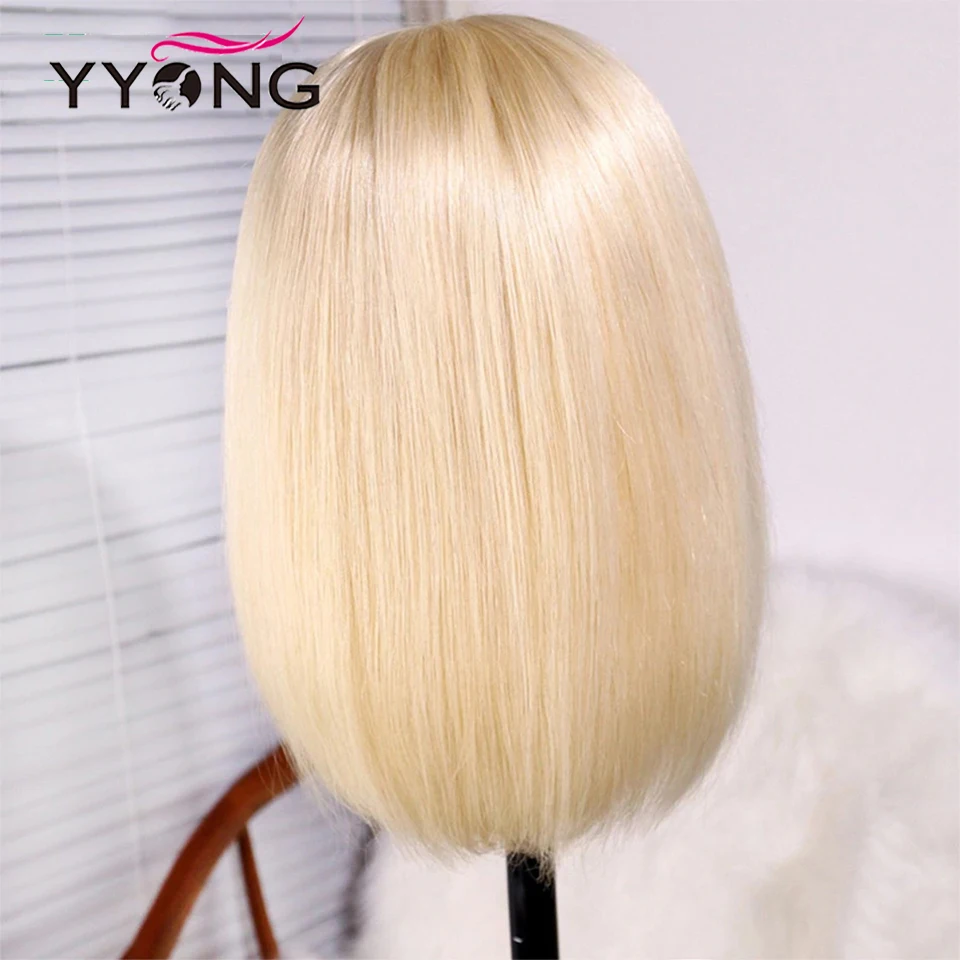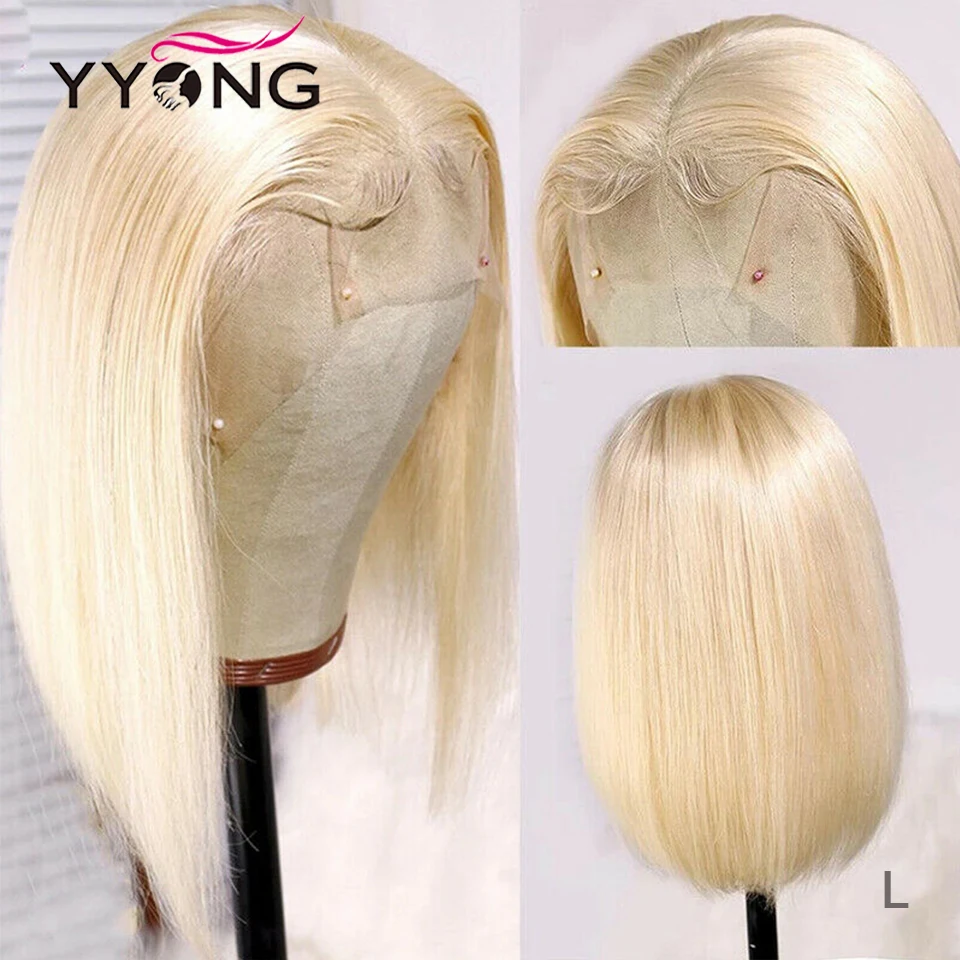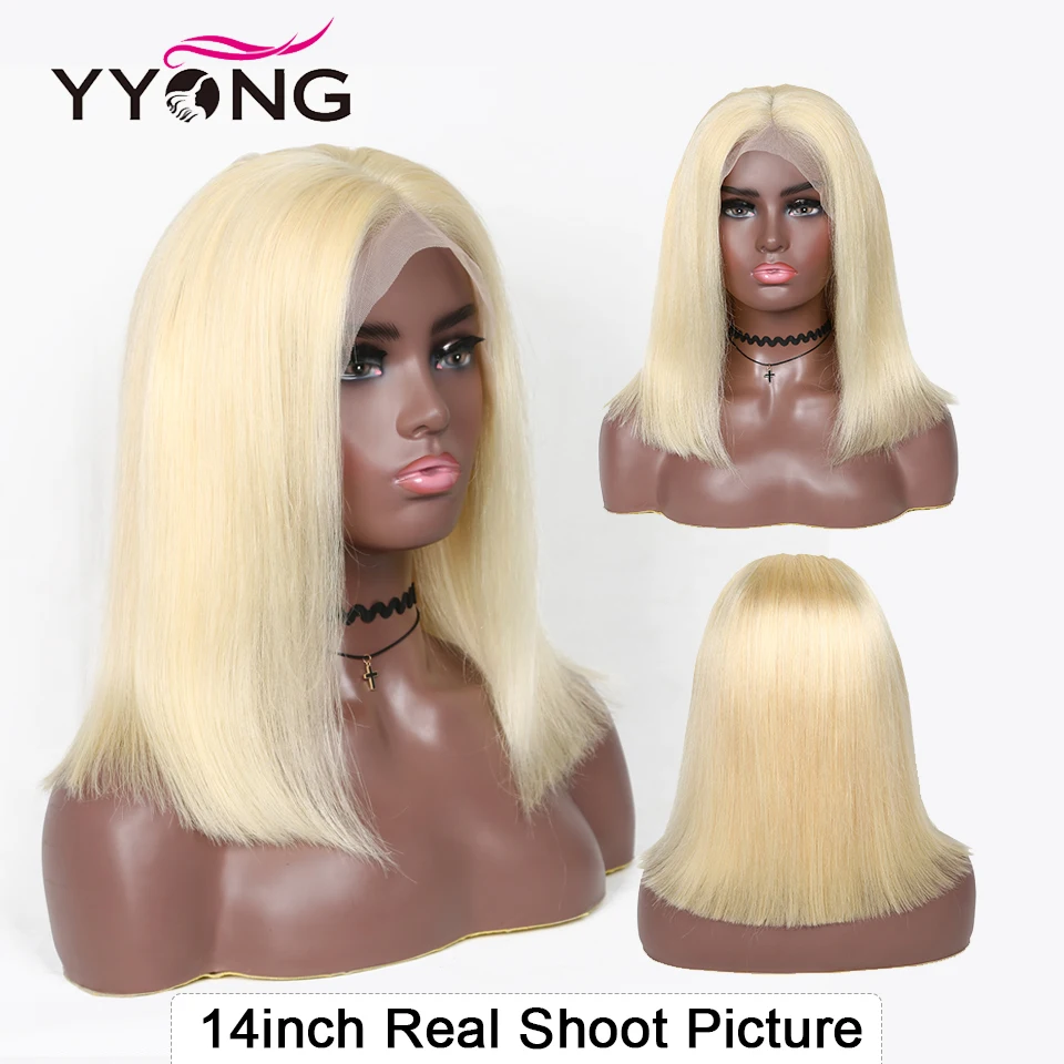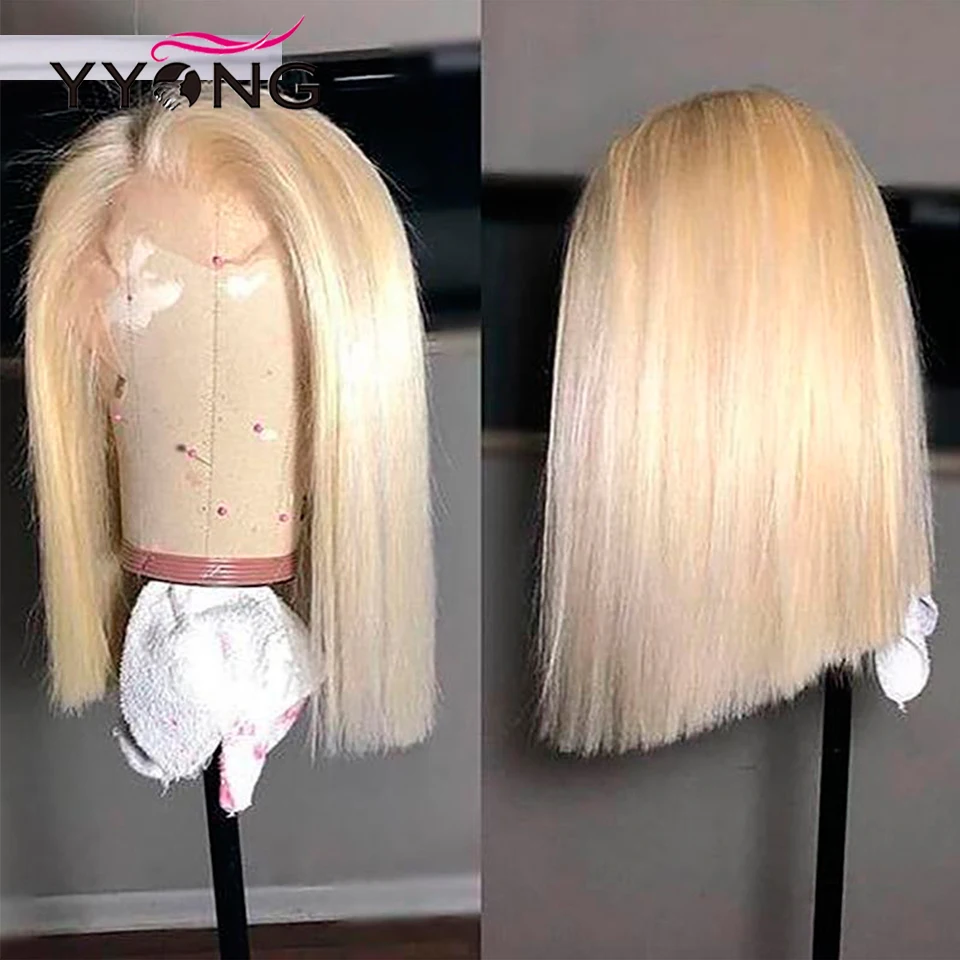 Yyong мед блонд T часть короткие Боб кружевные парики бразильские 613 прямой прозрачный кружевные человеческие волосы парик 613 Боб закрытие парик 150%