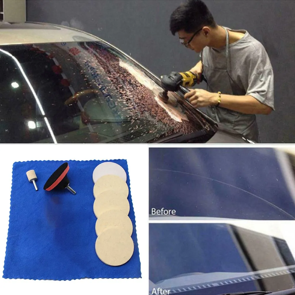 8 шт.компл. автомобильный инструмент для удаления царапин, набор для полировки стекла, шерстяная войлочная Полировочная накладка с переходником для дрели, инструмент для ремонта царапин