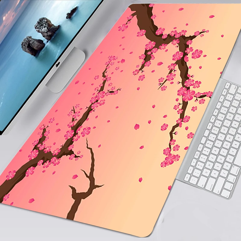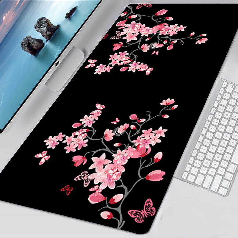 Цветочный игровой коврик для мыши с цветочным рисунком XXL, игровой коврик для мыши 900x400, резиновая клавиатура, Настольный коврик для мышки, Настольный коврик, коврик, ковер, вишневый цвет