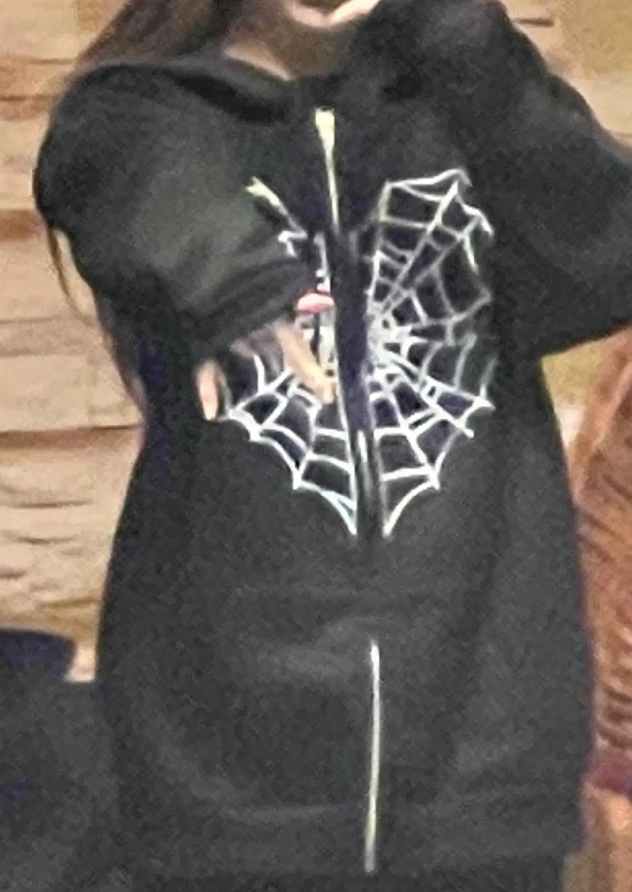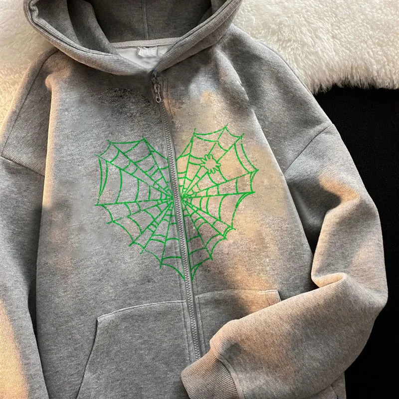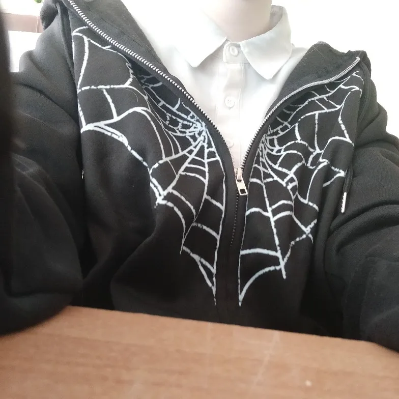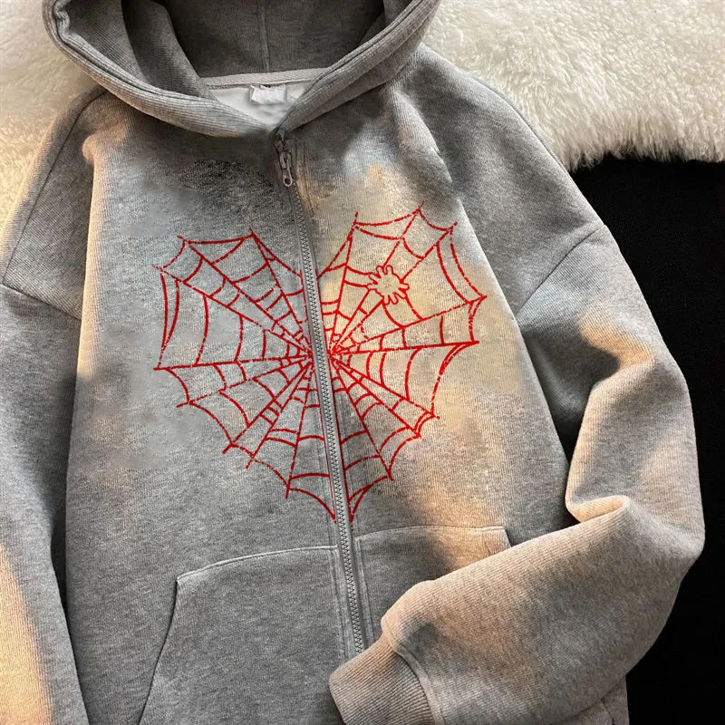 Женская толстовка в стиле Харадзюку, Свитшот в Корейском стиле с принтом паутины на Хэллоуин, Свитшот в готическом стиле Y2K, винтажная толстовка, женская одежда для зимы