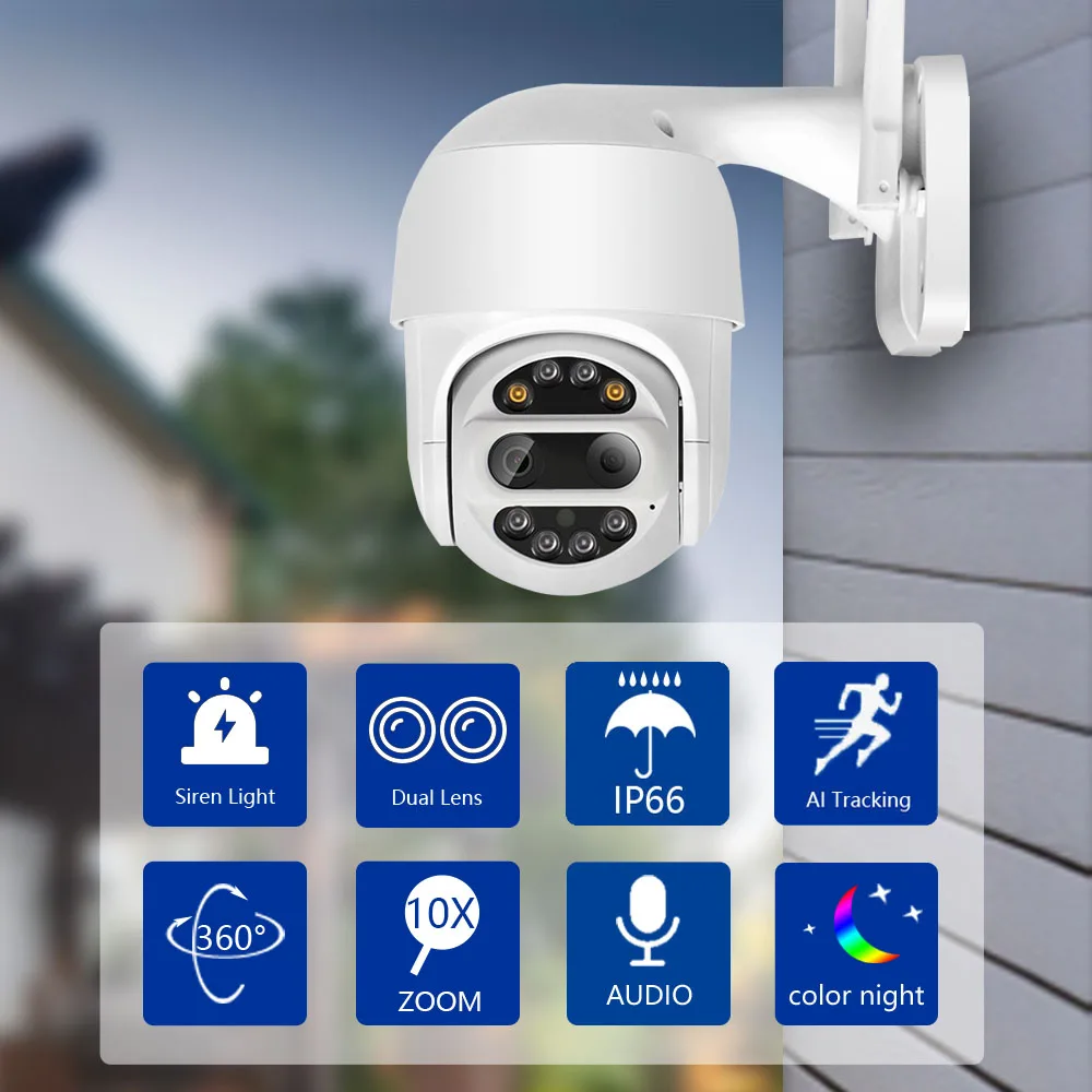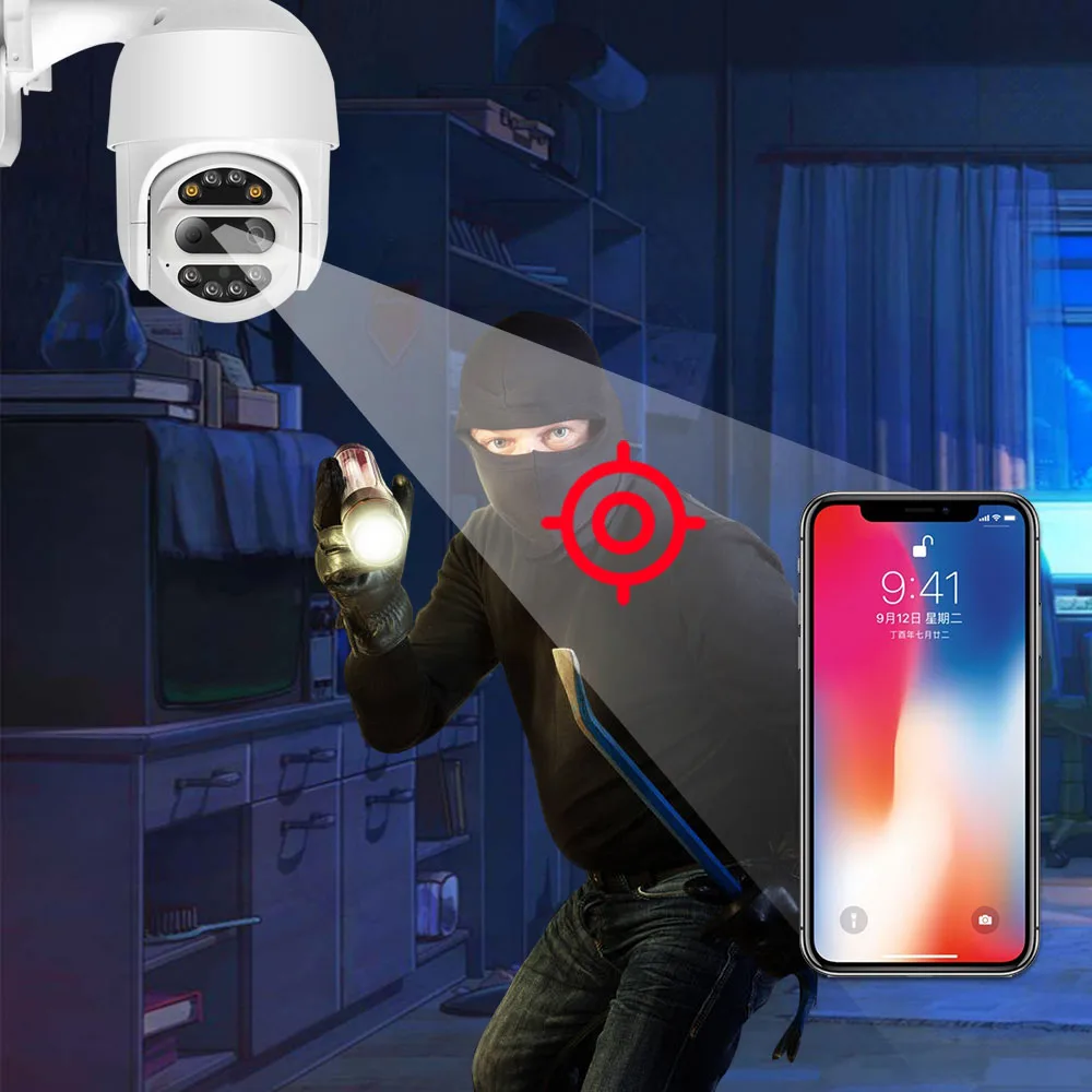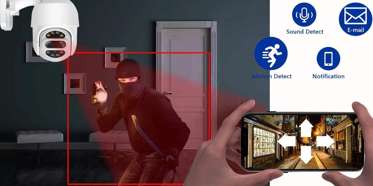 С PTZ 355 ° панорамирование 100 ° наклон, 360 ° угол обзора, cctv камера беспроводная наружная может контролировать каждый угол. Поддержка горизонтального автоматического отслеживания и вертикального горизонтального ручного отслеживания.