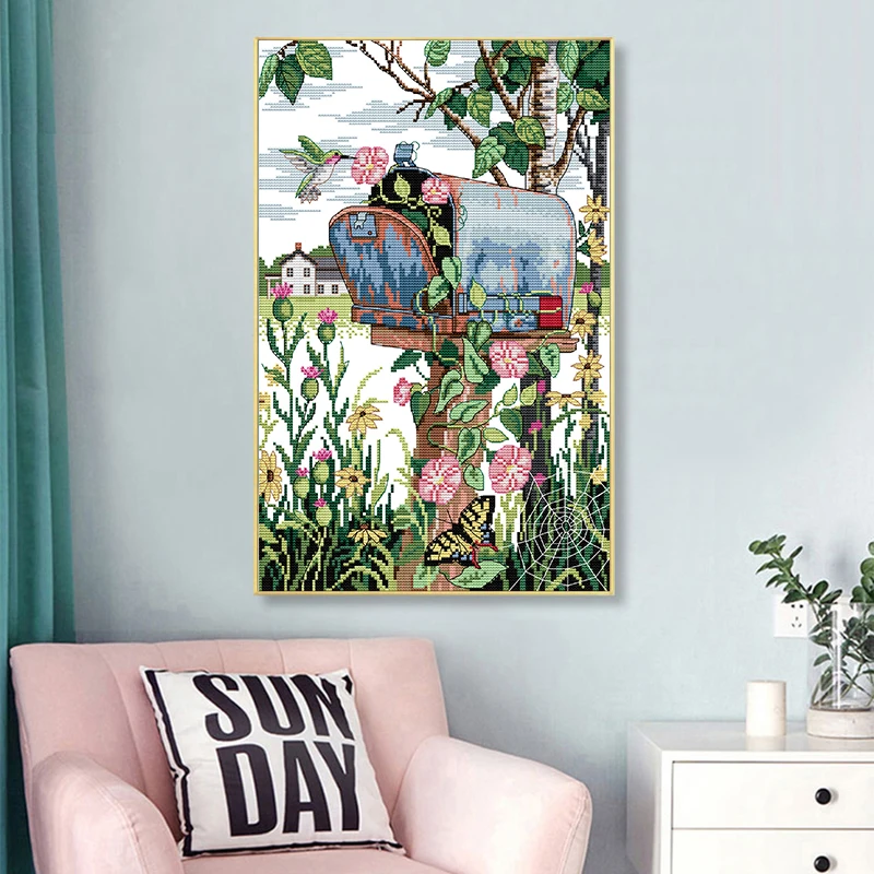 Набор для вышивки крестиком Morning Glory and Hummingbird на почтовом ящике 11CT 14CT подсчет Холст Вышивка Набор для рукоделия