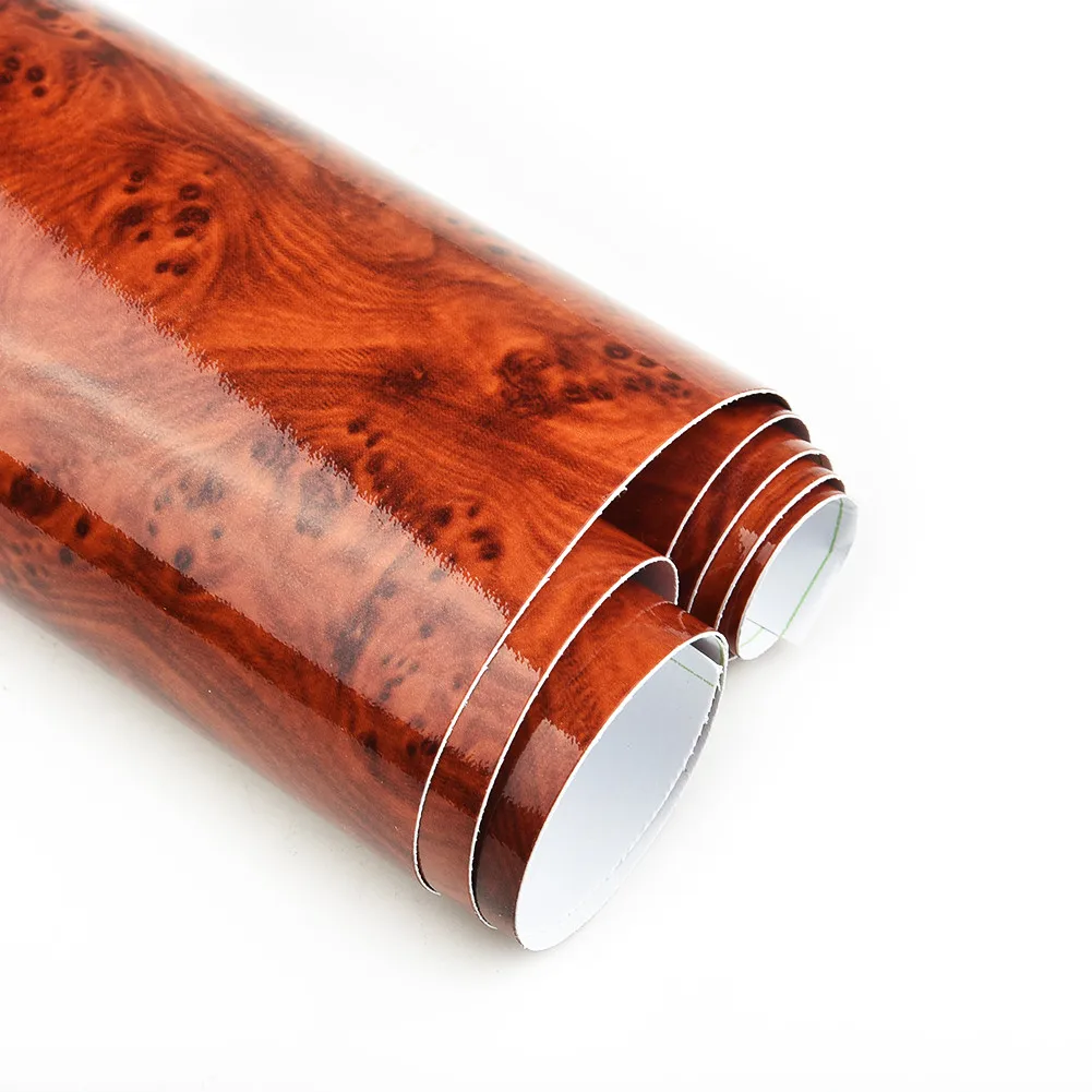1 м x 30 см Автомобильная внутренняя Наклейка виниловая древесина зернистые обои авто украшение высокая глянцевая темно-Бордовая древесина