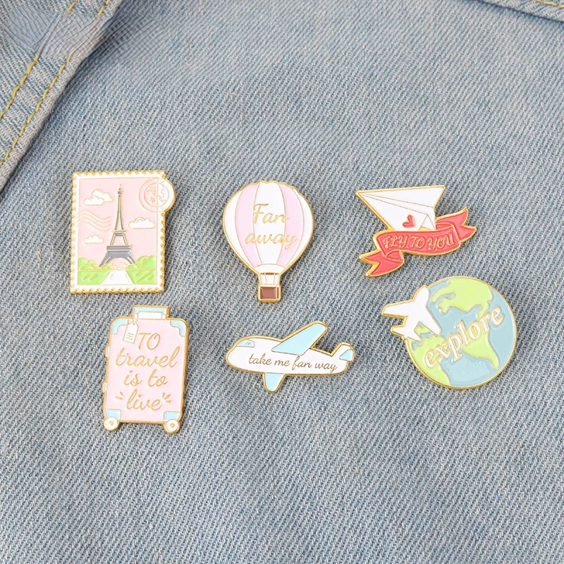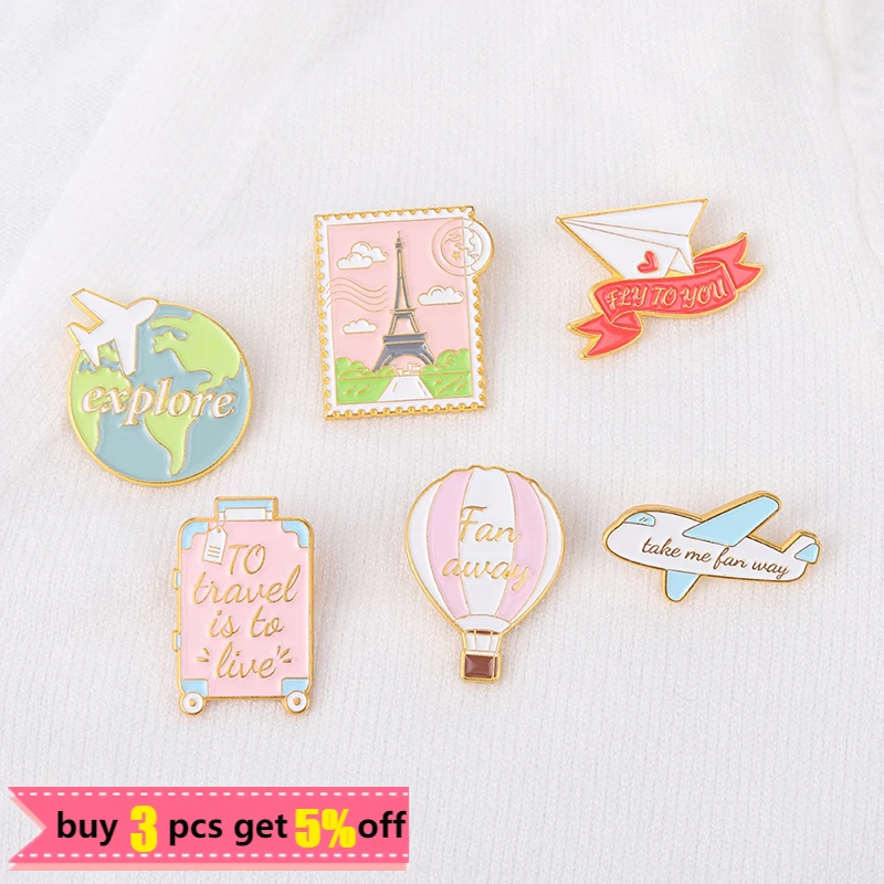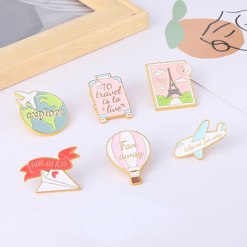 Забавная эмалированная булавка для багажа Исследуйте самолеты броши...