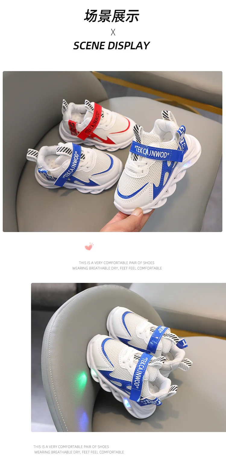 Детские кроссовки со светодиодной подсветкой, дышащие сетчатые сник...