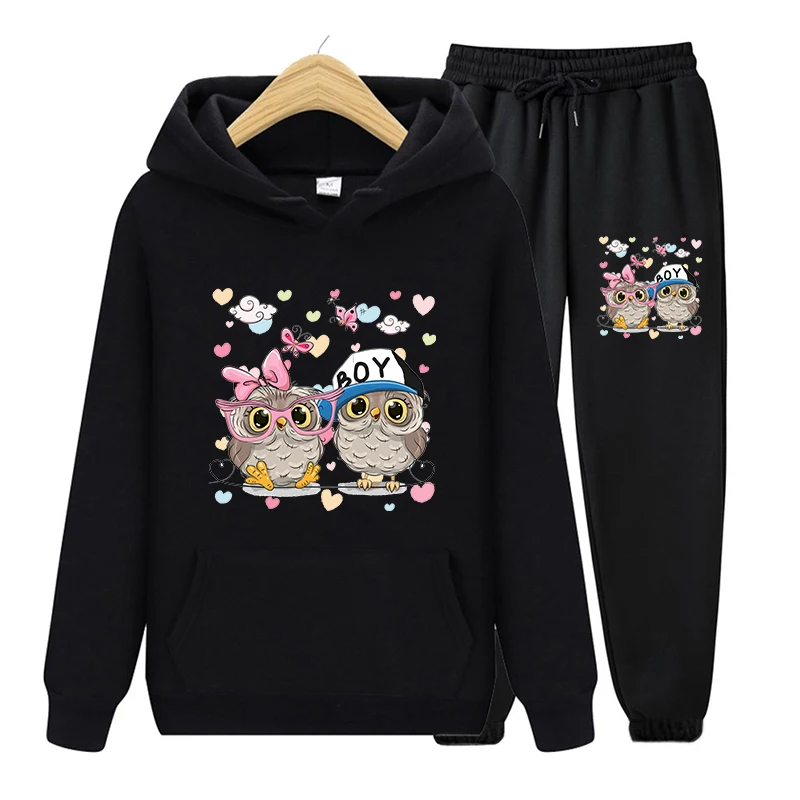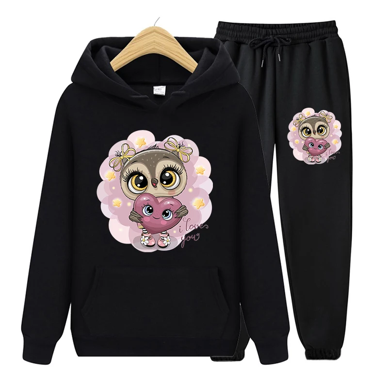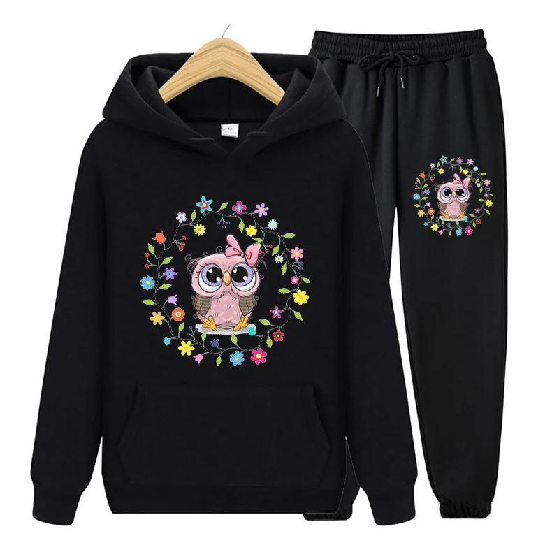 Костюм спортивный женский из 2 предметов с принтом Совы и капюшоном