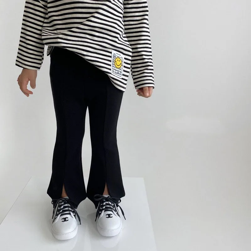 Новинка весна-осень 2021, детские брюки для девочек, модные однотонные брюки с разрезом и поясом на резинке, 4 цвета, s