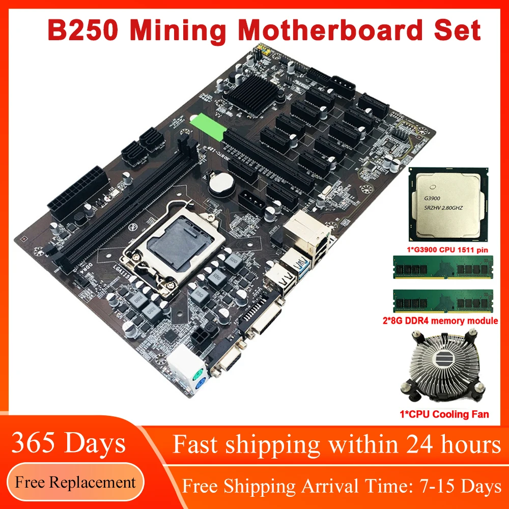 Набор материнской платы B250 для майнинга, ЦП G3900 LGA 1151 Kit 48G DDR4 12 PCIE x1 x16, графическая карта, графический процессор, поддержка DVI VGA, Биткоин-Майнер