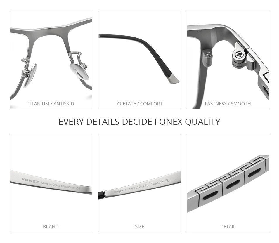 FONEX Оправа для очков Мужская из чистого титана, F85691