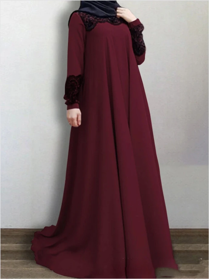 Арабские платья Caftan длиной до середины икры, бордовое вечернее п...
