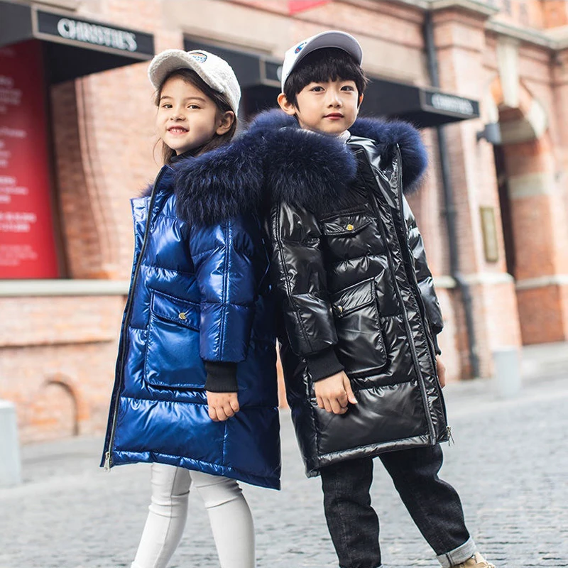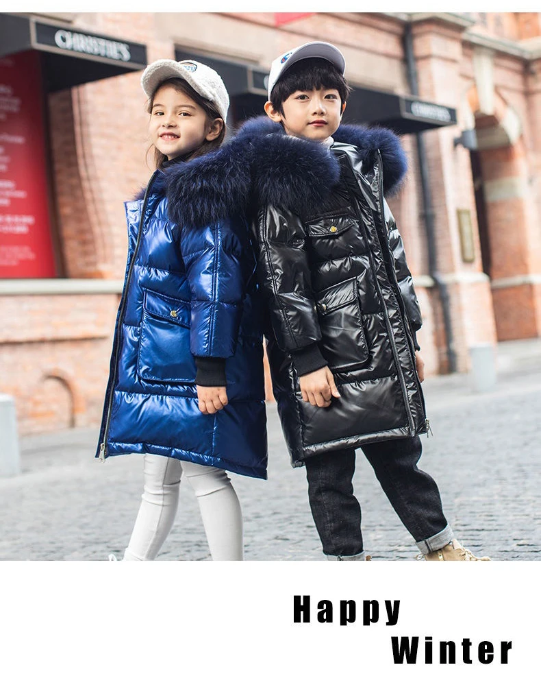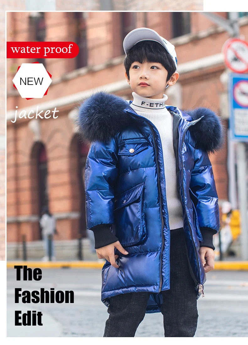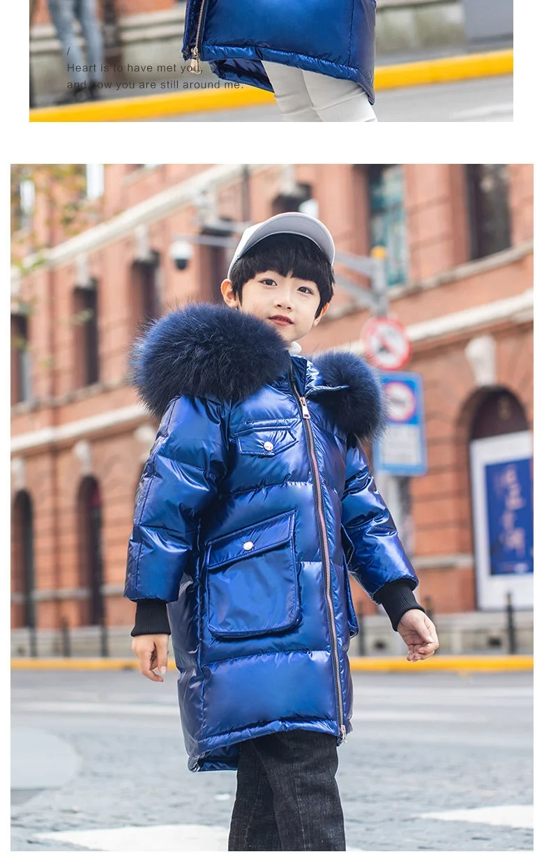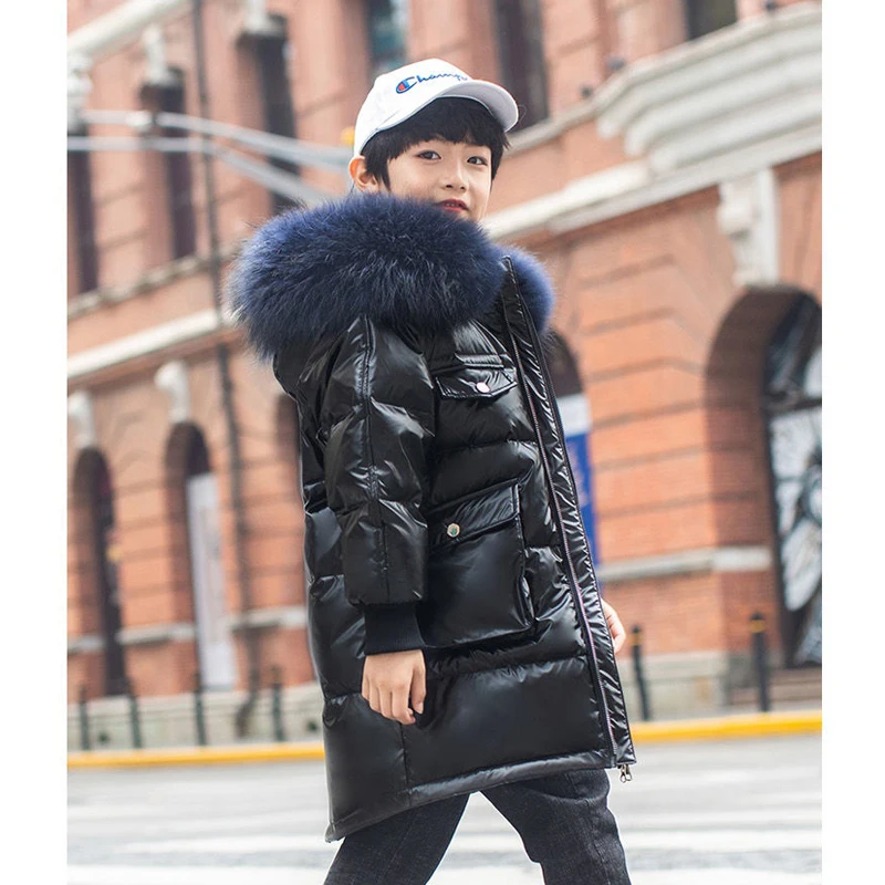 Парка для мальчиков, зимняя пуховая куртка, куртка на белом утином пуху для больших детей, пальто для девочек, комбинезон, верхняя одежда, водонепроницаемая теплая одежда TZ69