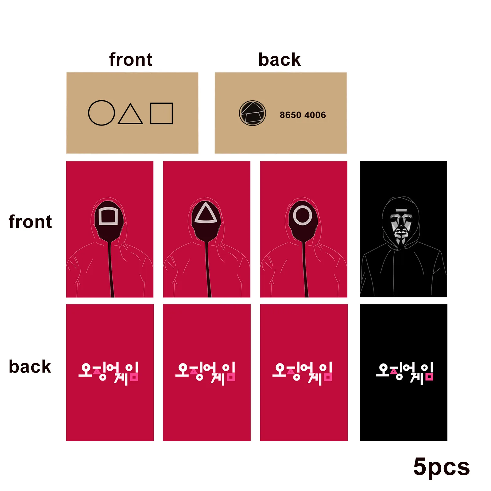 1. Забавная игра кальмара: принимая приглашение через коричневую карту с таинственным логотипом и принять участие в неизвестной игре. Игра кальмара позволяет игрокам бороться друг с другом во имя выживания.2.Карта игры кальмаров: Эта пригласительная карта игры вдохновлена игрой кальмаров в корейском сериале.3. Играйте с друзьями: отправьте эту загадочную карту своим друзьям, Наберите номер телефона на карте и примите участие в игре вместе. Очень подходит для любых настоящих поклонников кальмаров.4. Простая в обращении: около 90x60 мм/3,54 * 2.36in, 10 карт в общей сложности. 1 телефонная карта, 9 значков. Бумажный материал-светильник, который легко обрабатывать.5. Загадочный и интересный: карта включает в себя круг, треугольник, форму о. Каждый узор на карте представляет различные значения, которые загадочны и интересны.Описание:Забавная игральная карта кальмара, загадочная и интересная, легко управляемая, идеальная игра для друзей, играющих вместе в свободное время.Спецификация:Материал: бумагаРазмеры: около 9*6 см/3,54 * 2.36inУпаковочный лист:5 шт или 10 штПригласительные карты для игры в кальмарыПримечание:Из-за световых эффектов и углов съемки, в продукте есть разница в цвете, пожалуйста, поймите.