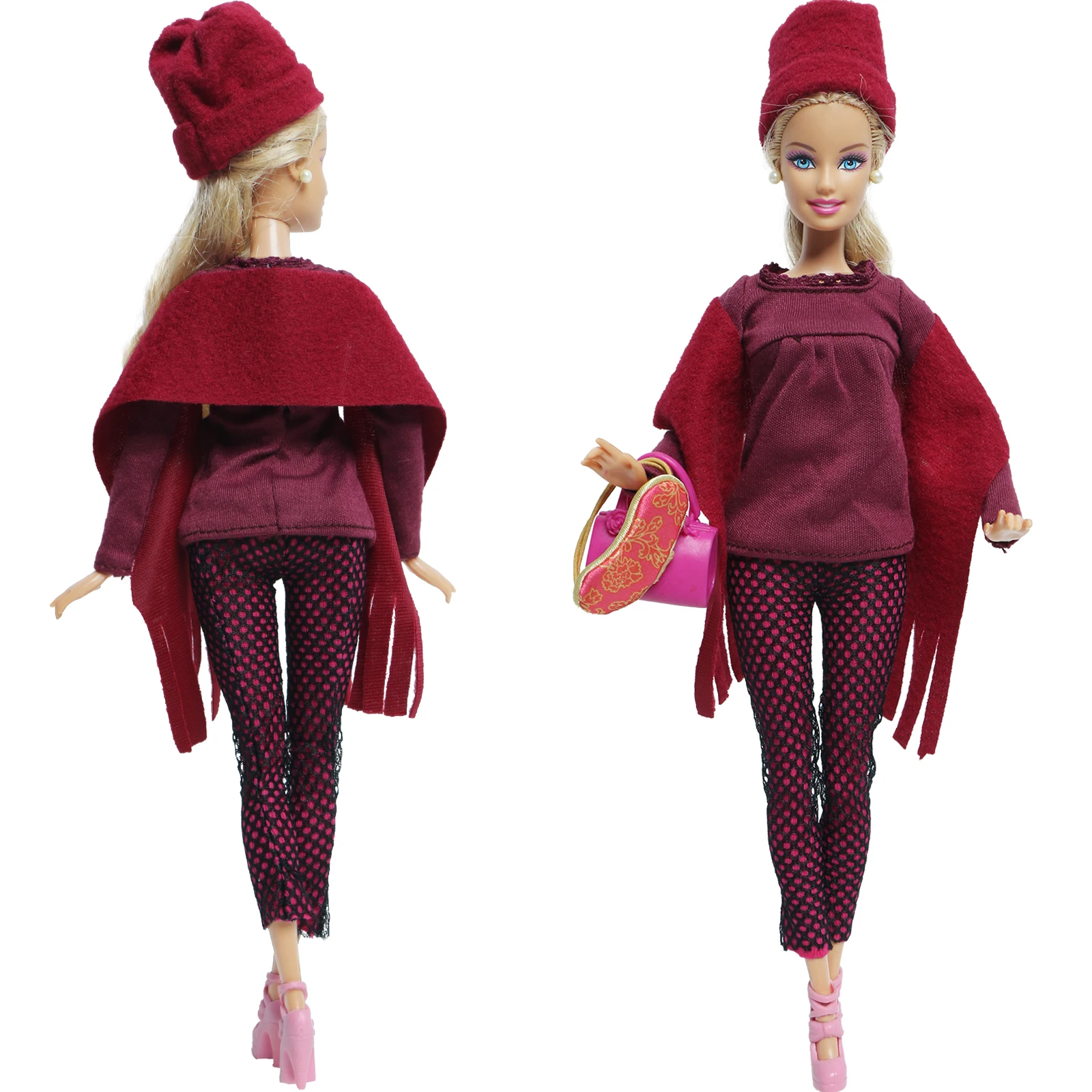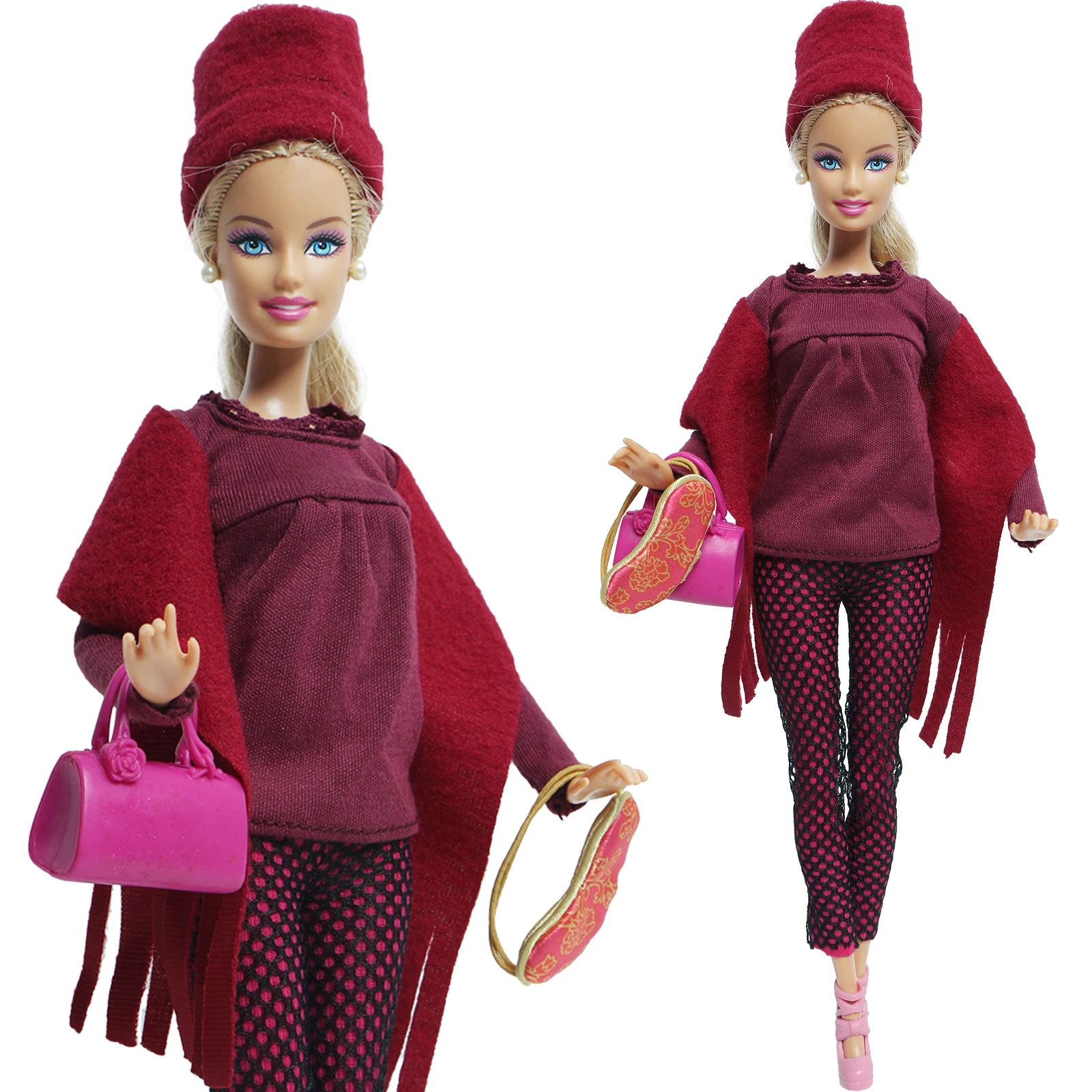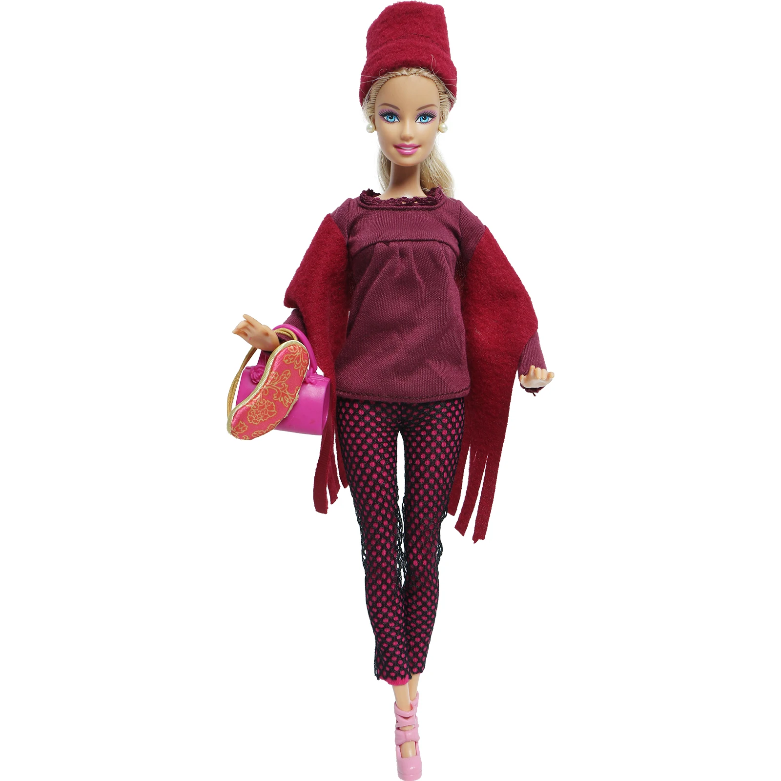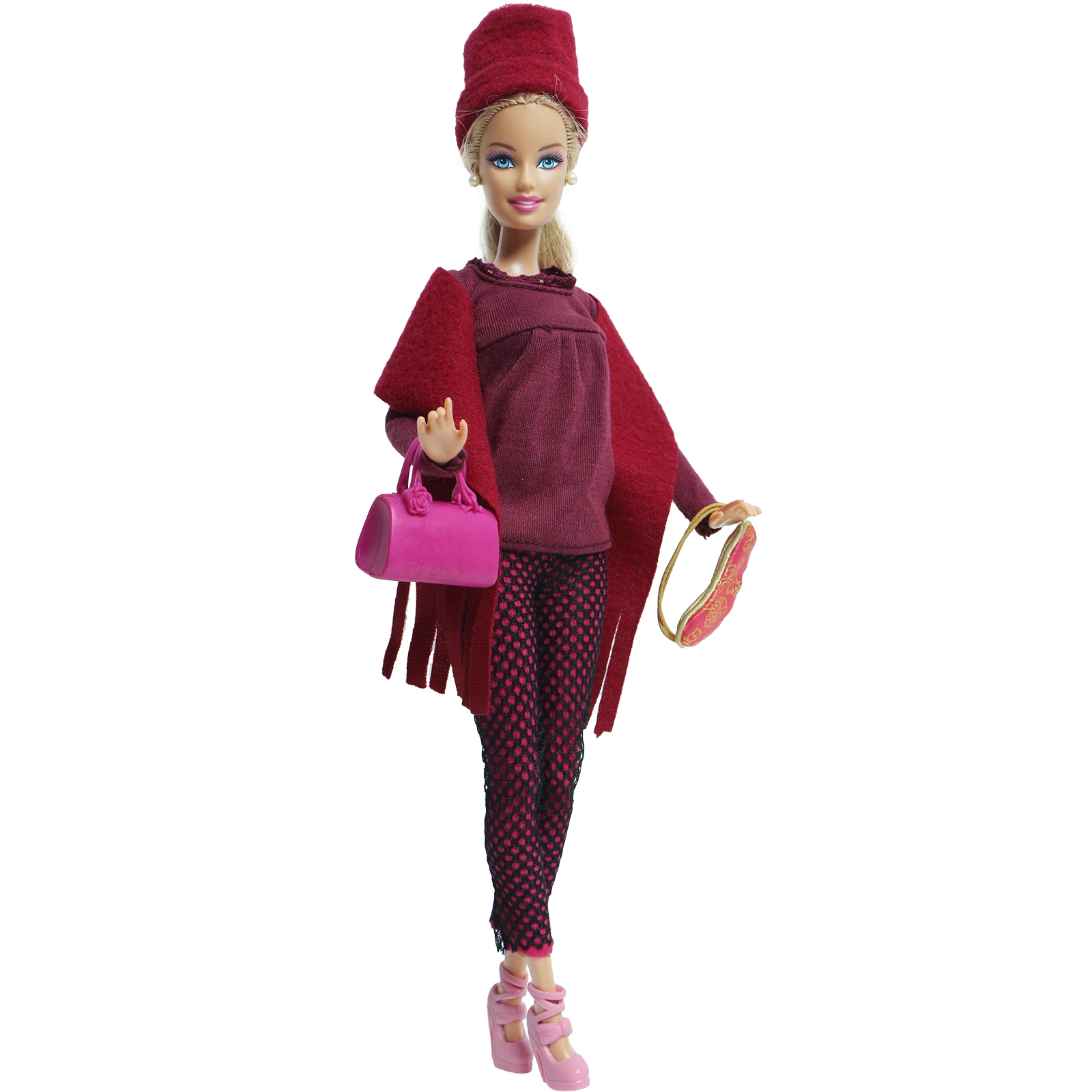 Модная красная одежда BJDBUS, блузки с длинными рукавами, шапка, шарф, сумочка на высоком каблуке, маска для глаз, Одежда для куклы Барби, зимняя одежда, игрушки