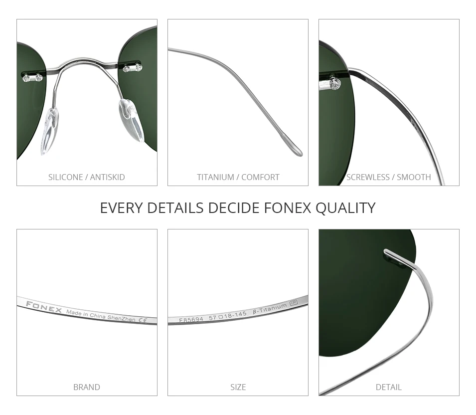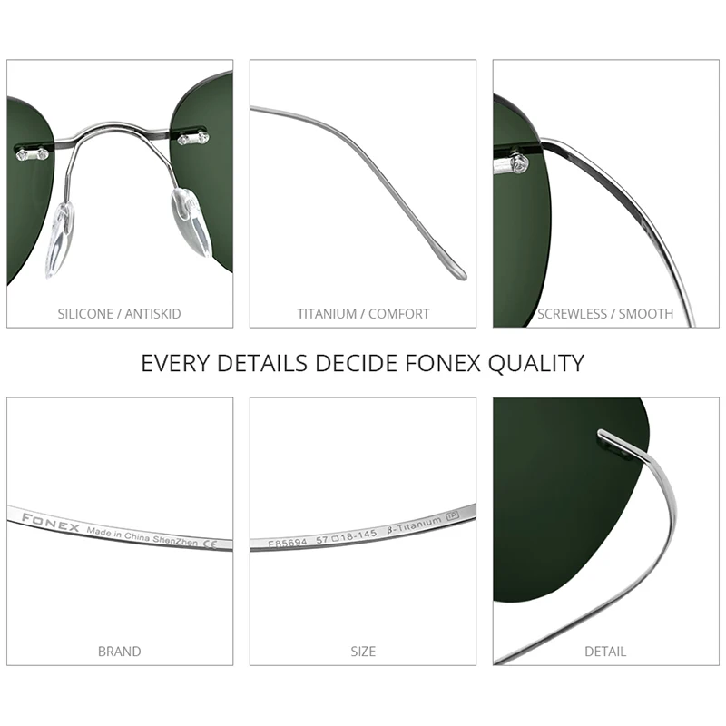 FONEX Мужские и женские очки без оправы, из титанового сплава, с за...