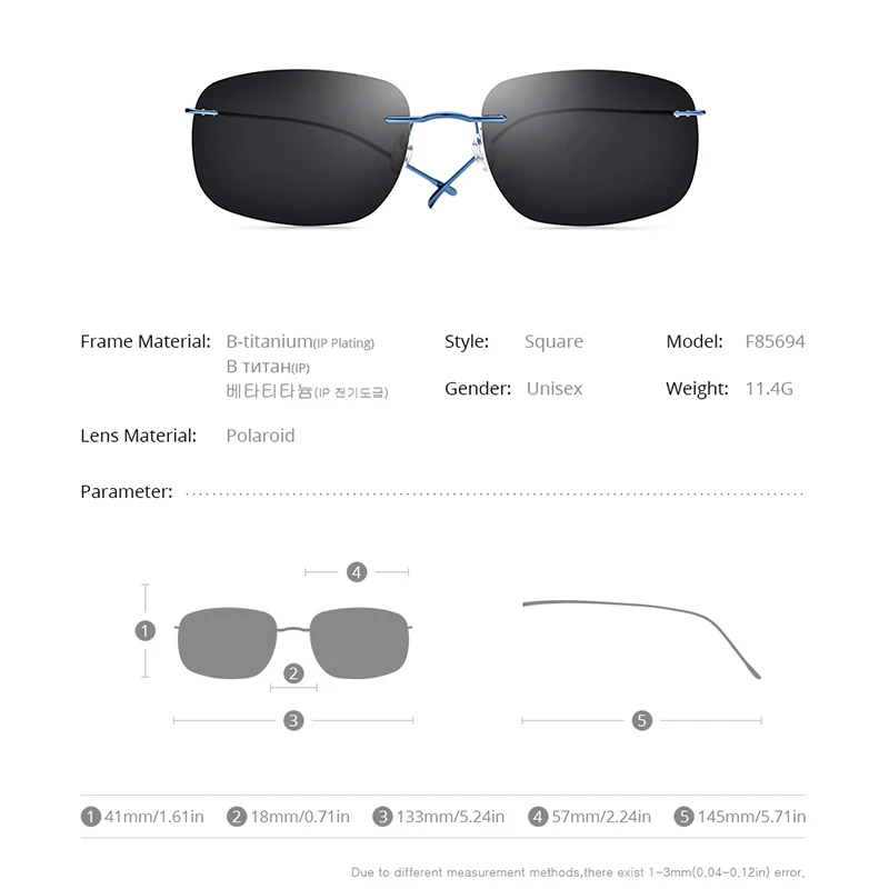 FONEX Мужские и женские очки без винтов, титановые ультралегкие квадратные поляризационные солнцезащитные очки без оправы, модель F85694 в Корейском стиле, 2022