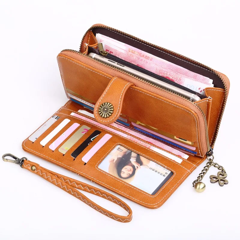 Кожаные женские кошельки, модный длинный женский кошелек на молнии,...