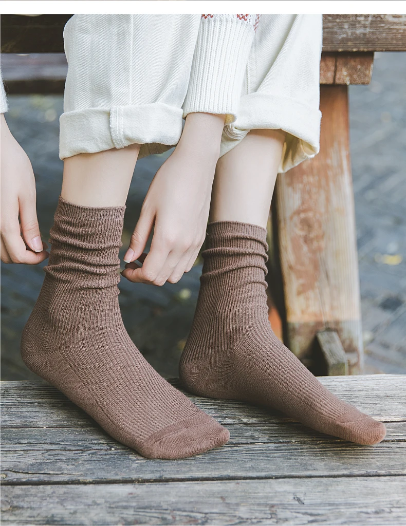 Носки женские, хлопковые, однотонные, вязаные, черные, белые, кофей...