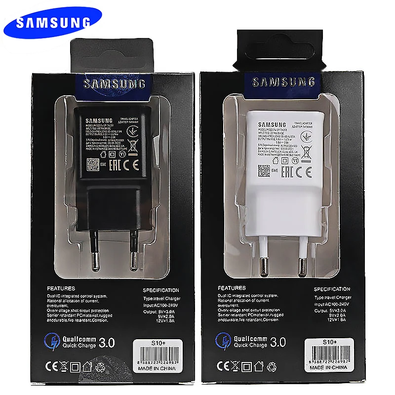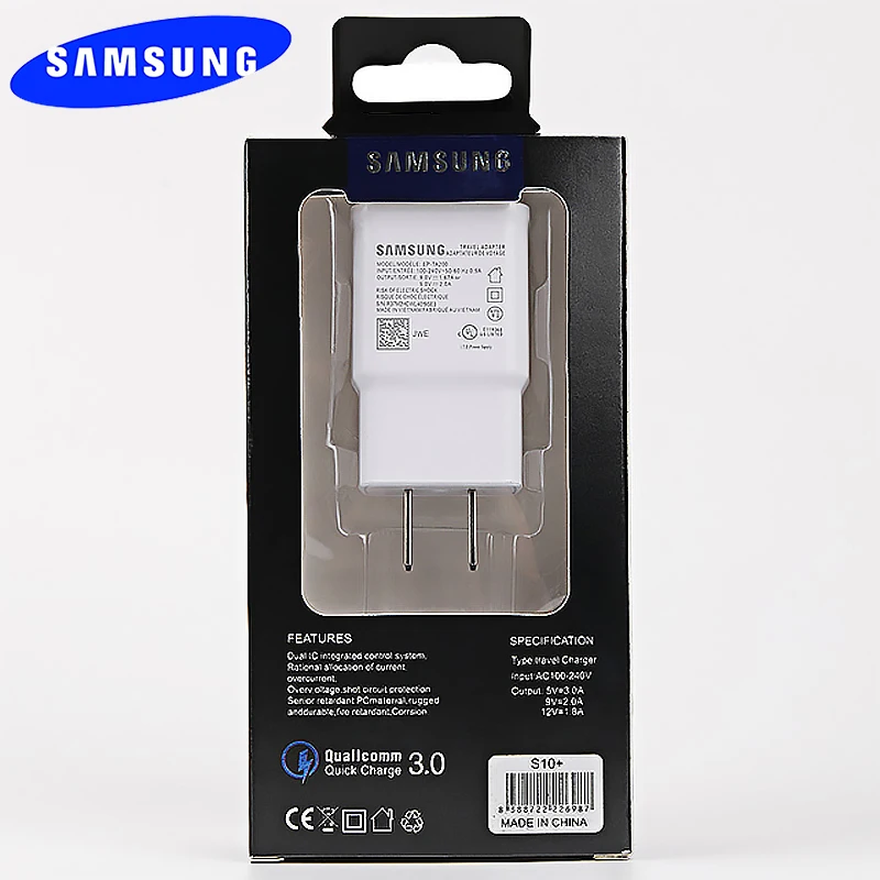 Зарядное устройство Samsung, для Galaxy S10, S9, S8, S7, S6, Edge Plus, J5, J7, J3, Note 9, 8, 7, 5, 3, для Европы и США, с поддержкой быстрой зарядки, EP-TA200