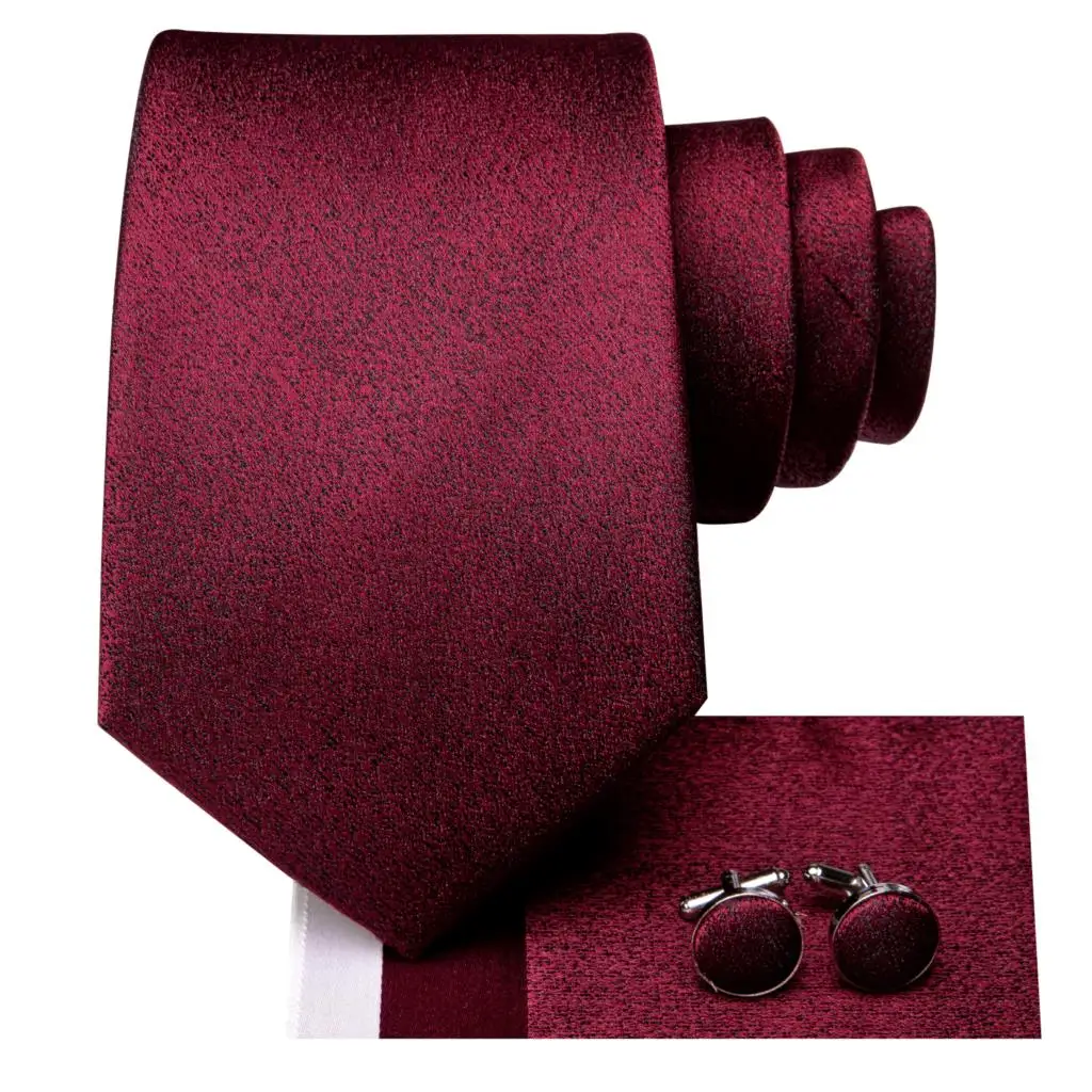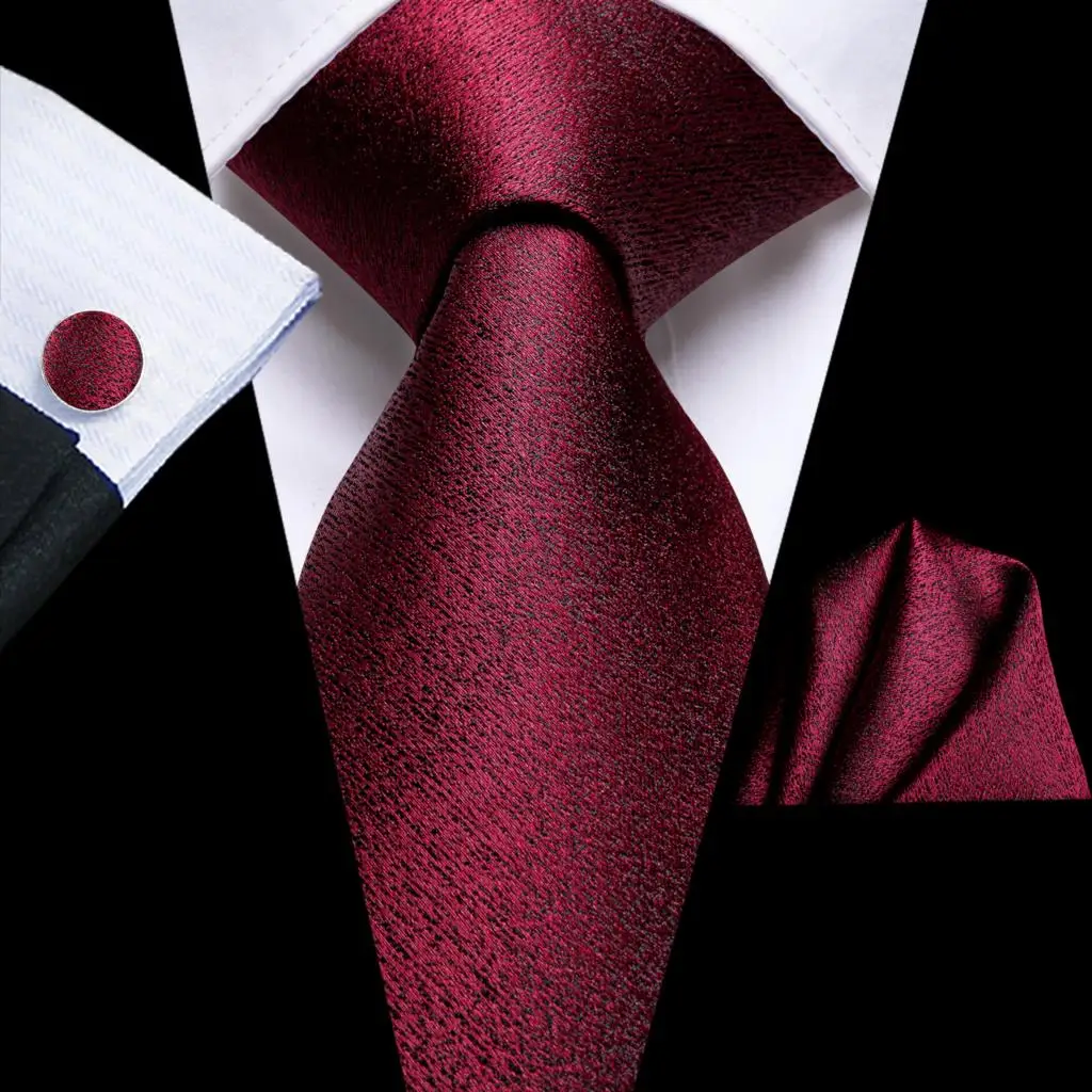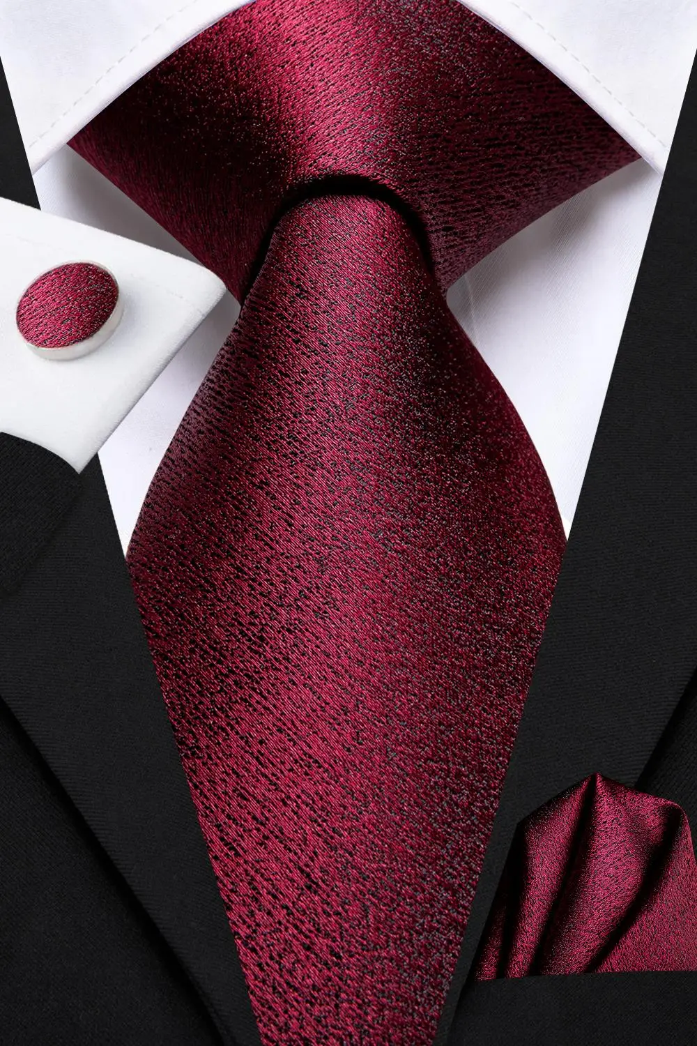 Деловой бордовый красный Одноцветный Шелковый Свадебный галстук для мужчин Handky Запонки мужские галстуки модные дизайнерские вечерние прямые поставки Hi-Tie