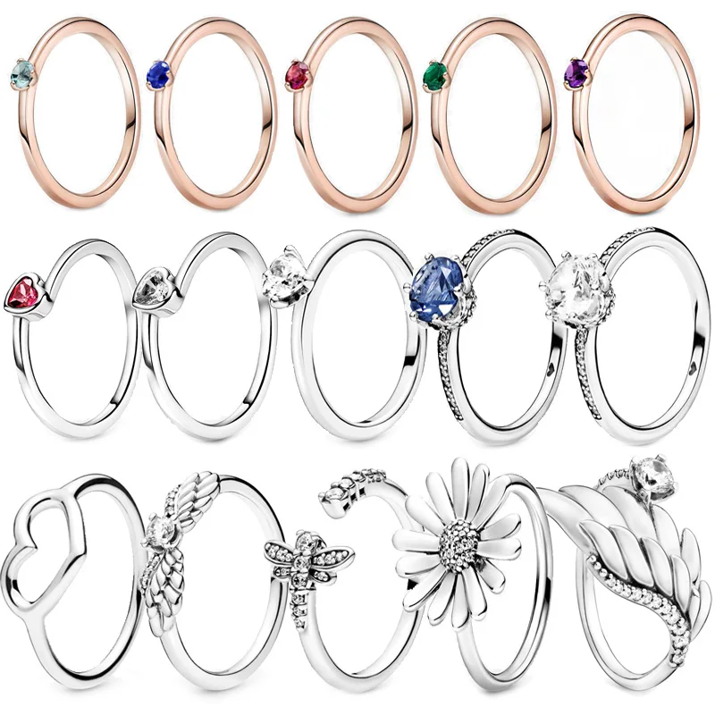 Новые оригинальные серебряные кольца, красочное кольцо с солитером ...