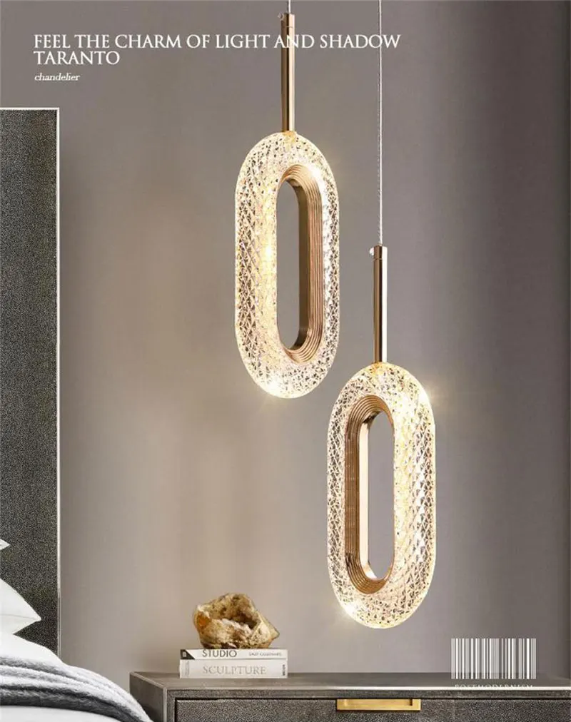 Современный Золотой светодиодный Овальный подвесной светильник, акриловый подвесной светильник в скандинавском стиле для спальни, прикроватного столика, кухонного островка, лестницы, декоративный светильник