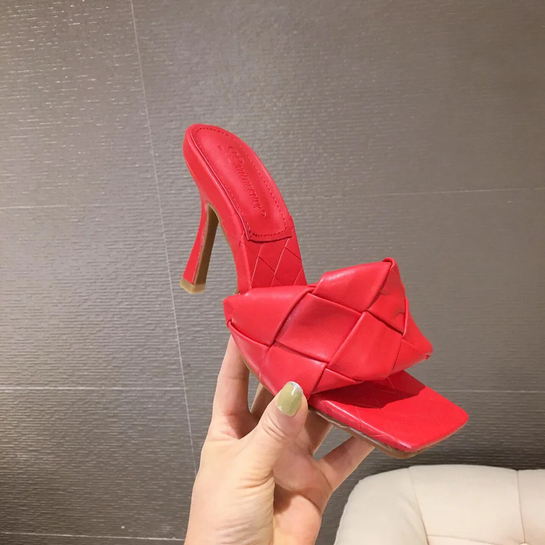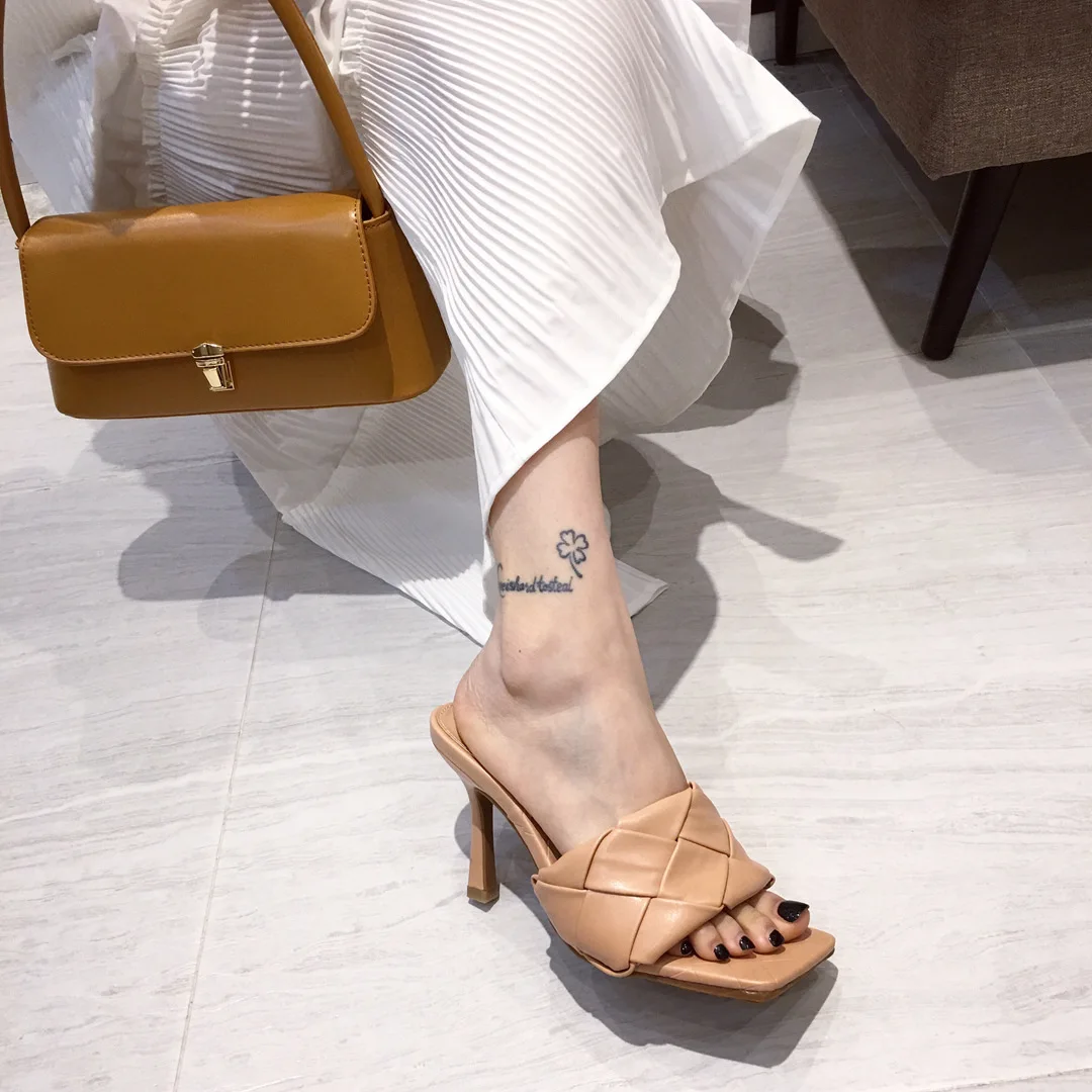 Женские шлепанцы на высоком каблуке, кожаные сандалии с квадратным ...