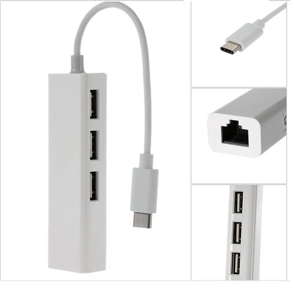 USB Gigabit Ethernet с 3 портами USB C HUB 2,0 RJ45 Lan сетевая карта USB к Ethernet-адаптеру для Mac iOS Android PC RTL8152 HUB