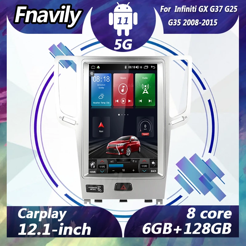 Fnavily 12,1 "Android 11 автомобильное радио для Infiniti GX G37 G25 G35 видео dvd плеер Tesla стиль автомобильные стереосистемы навигация GPS 2008-2015Автомобильное радио для Infiniti GX G37 G25 G35 видеоAndroid 11 8core 4 + 64G 6 + 128G
