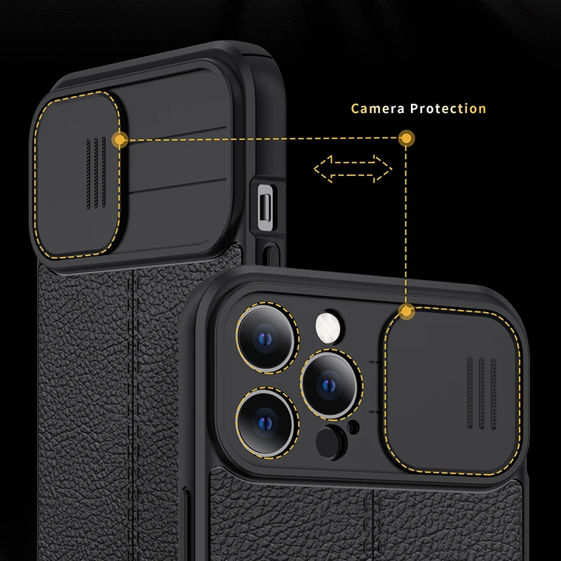 Противоударный чехол для телефона IPhone 13 12 11 X XR Xs Max Pro Mini Lychee PU Защита объектива 11Pro 12Pro 13Pro 6 7 8 Plus