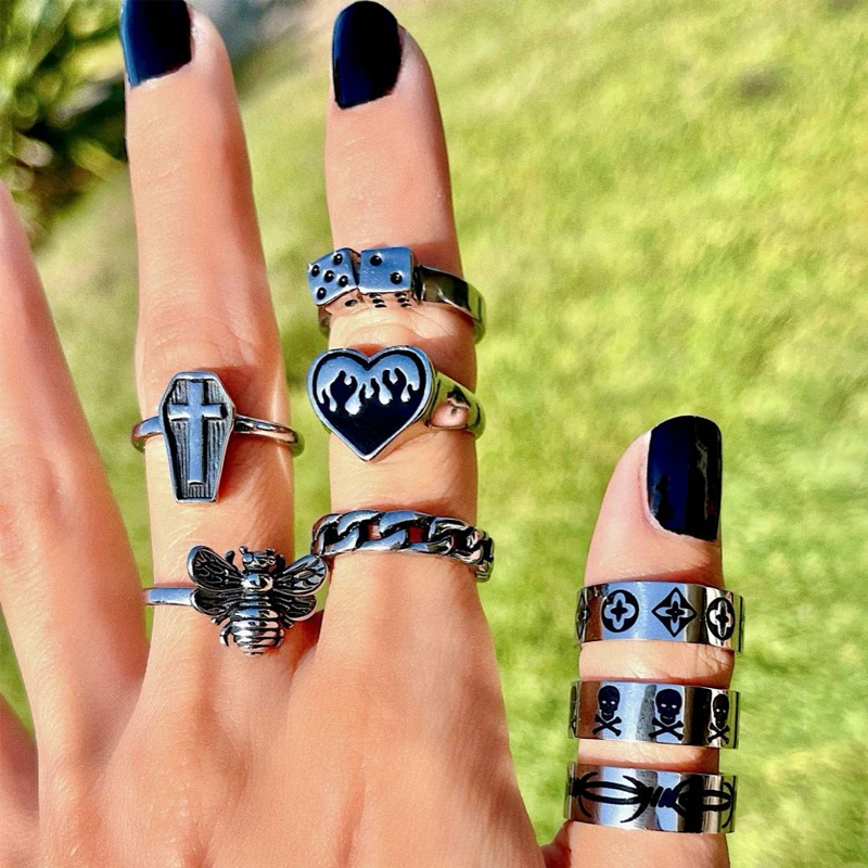 Женское кольцо в стиле панк и готика, кольцо в форме сердца с серебряным покрытием