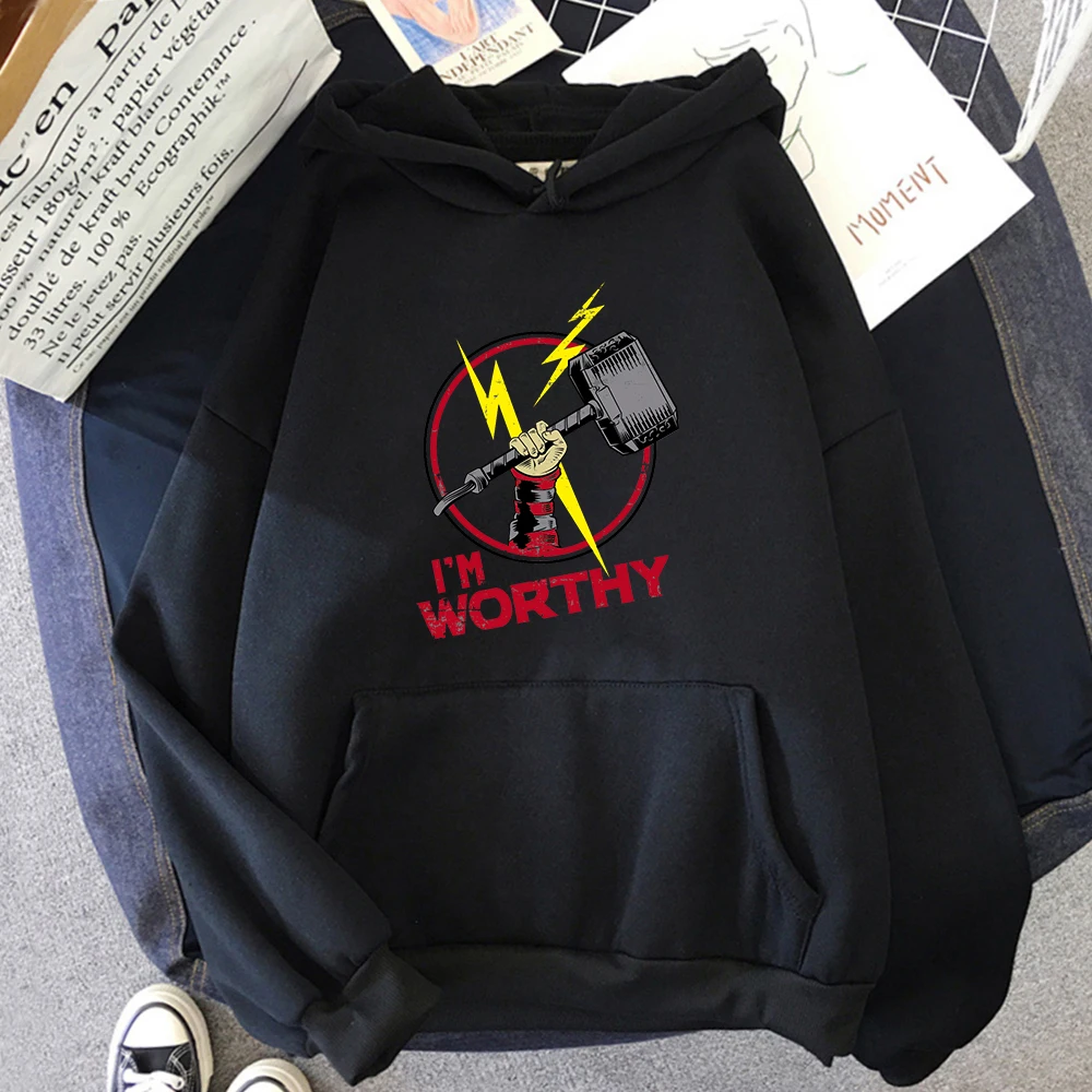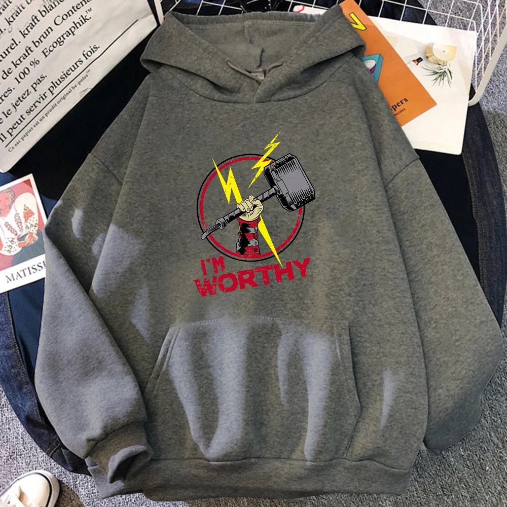 Мужская Флисовая Толстовка с капюшоном и принтом I'm Worthy Thor Odinson