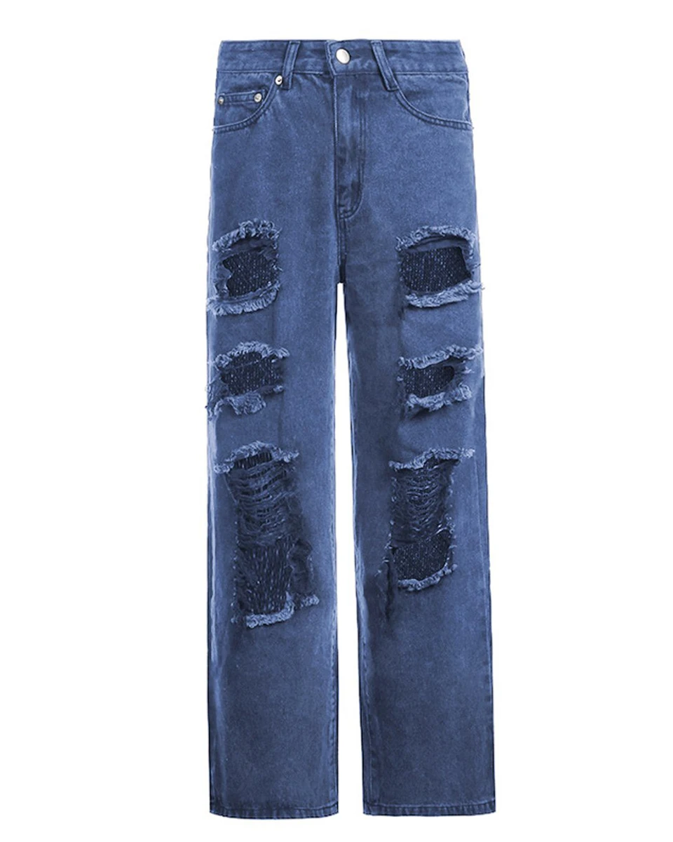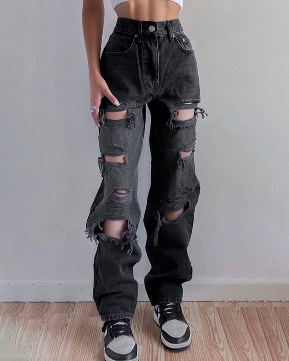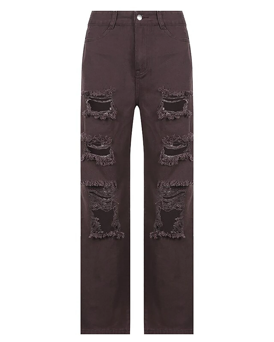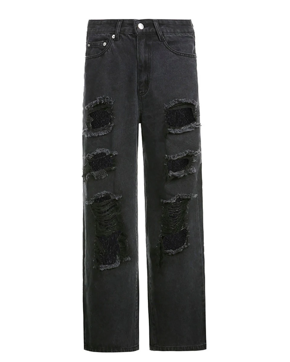 Модные женские брюки Y2K, рваные свободные джинсы с высокой талией,...
