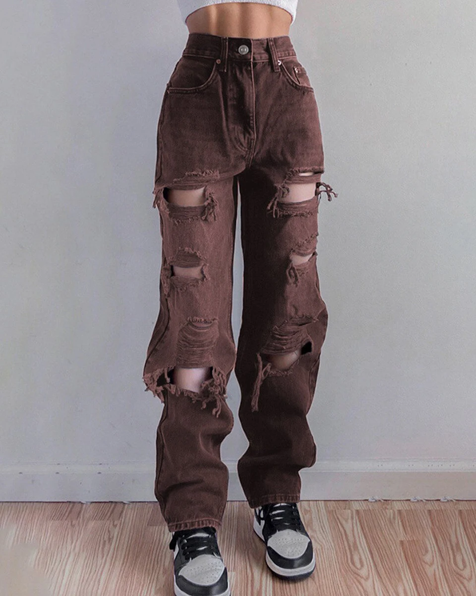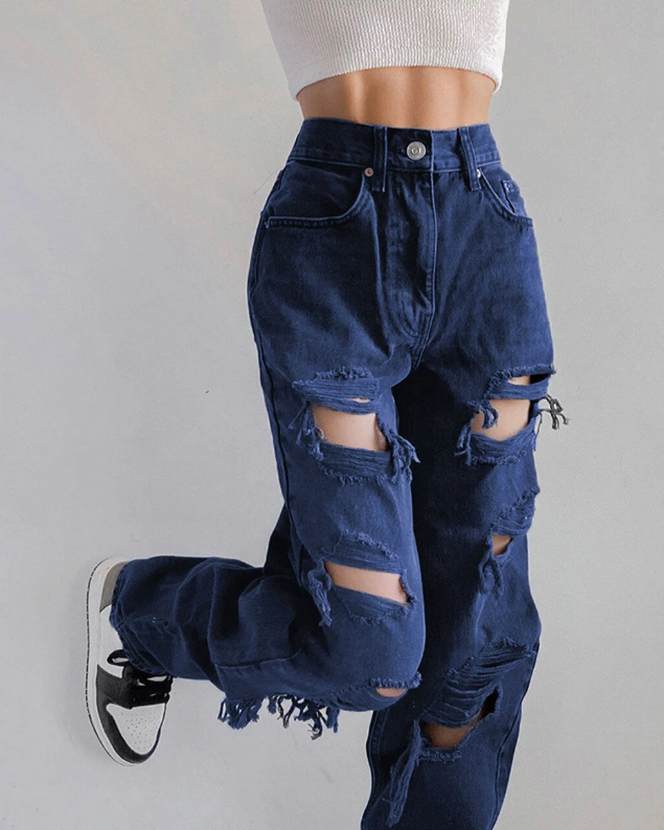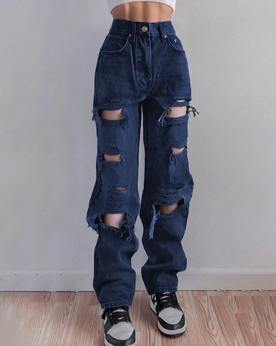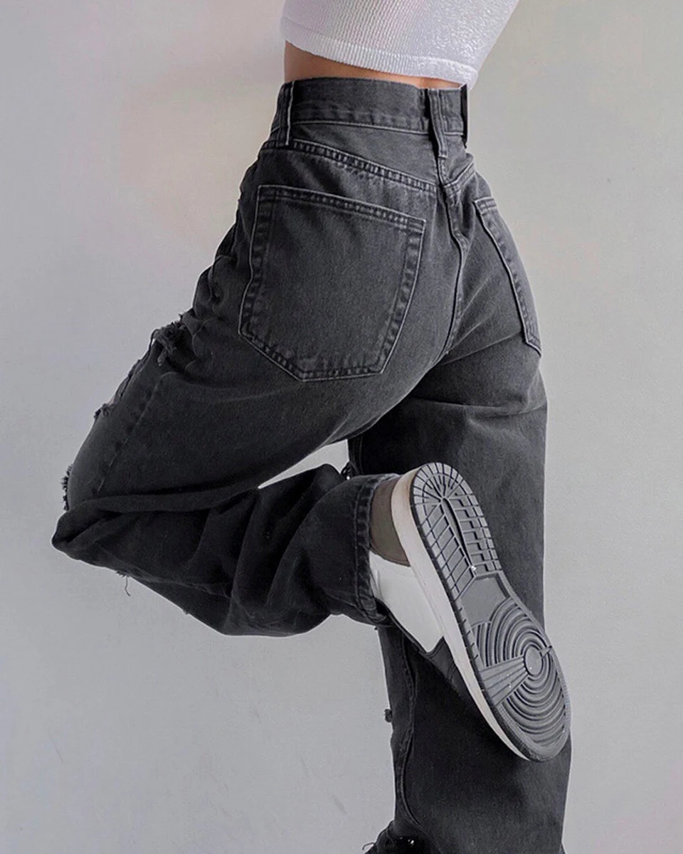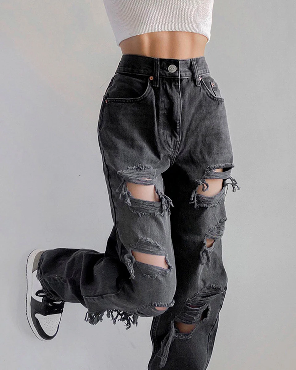 Модные женские брюки Y2K, рваные свободные джинсы с высокой талией,...