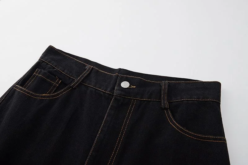 Прямые брюки в стиле ретро с карманами и принтом, повседневные джин...