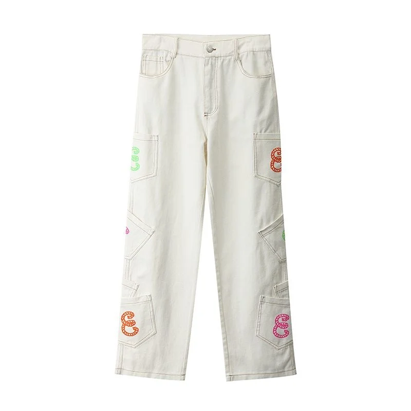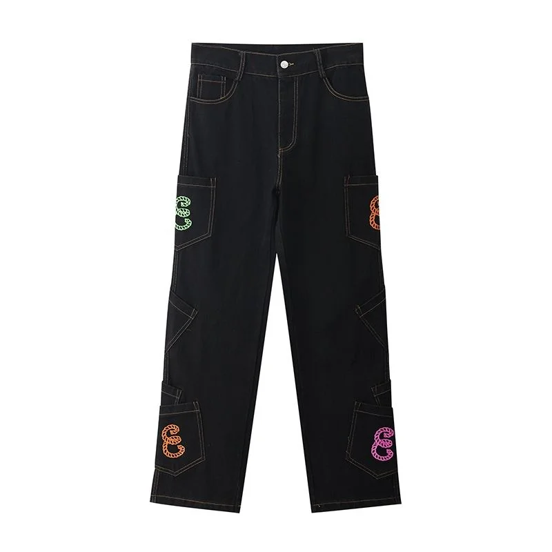 Прямые брюки-карго в стиле ретро с карманами и буквенным принтом, мужские и женские бриджи, брюки в стиле Харадзюку, уличная одежда, повседневные джинсовые брюки