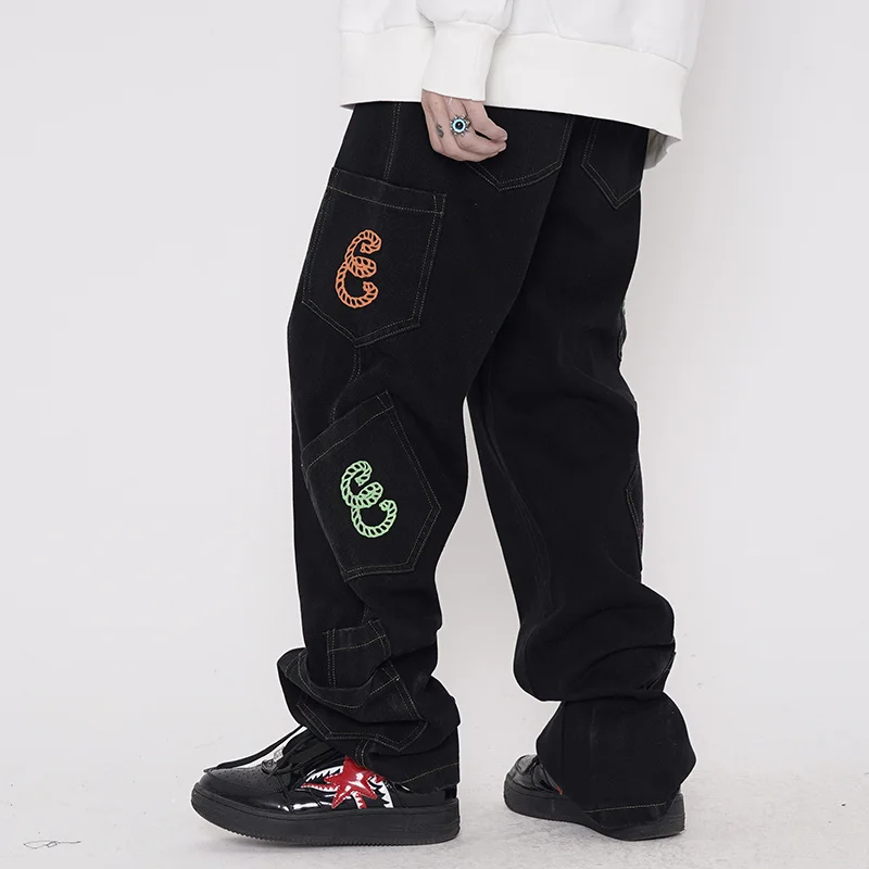 Pantalones hombre 2021 карго мешковатые джинсы с карманами черные б...