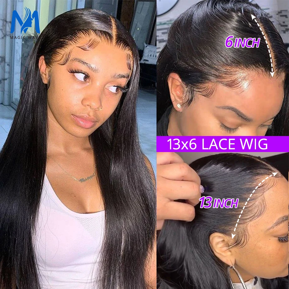 Волшебные волнистые 100% человеческие волосы на сетке, передние парики, прозрачные 13x6 прямые волосы на сетке, полноразмерные парики без повреждений, HD кружево