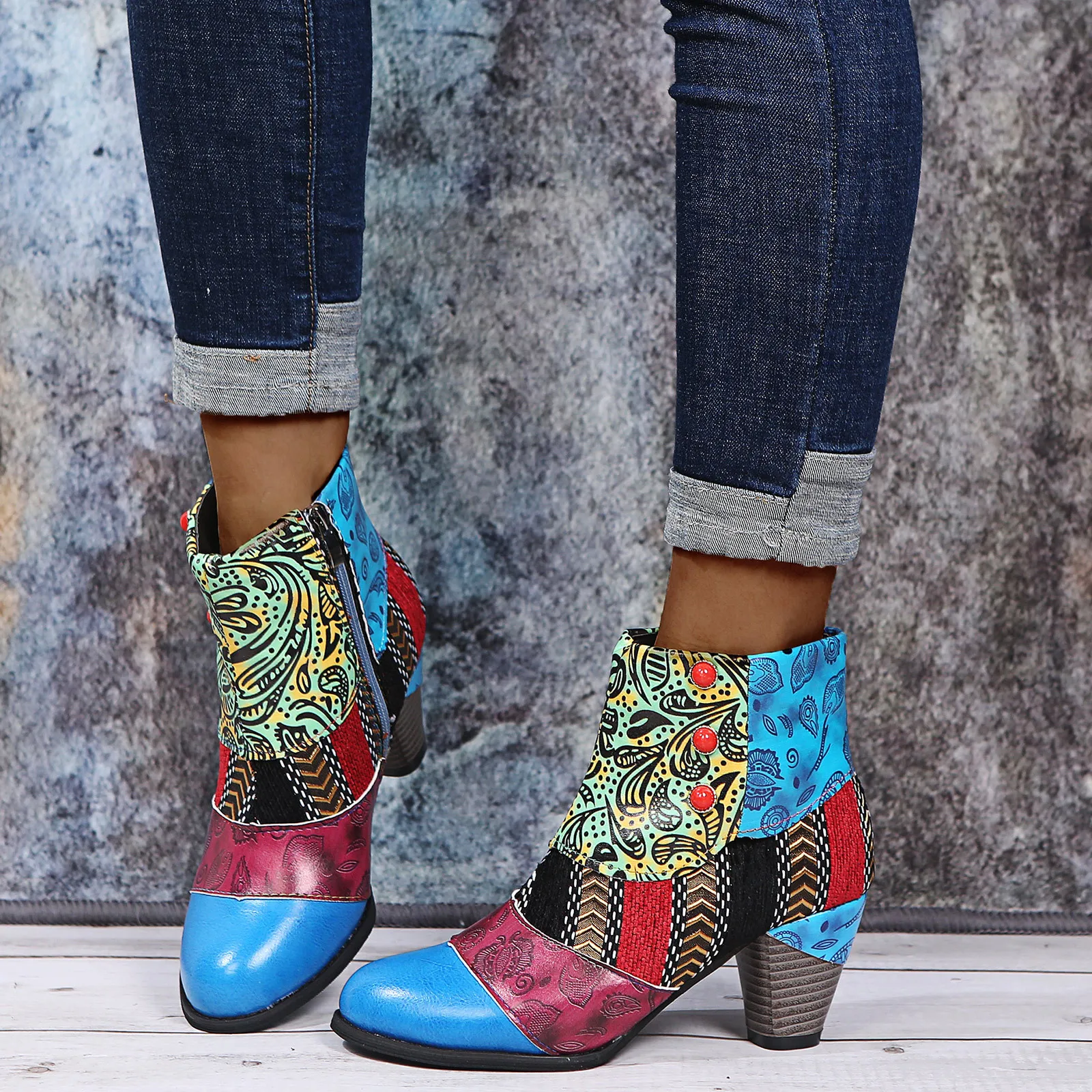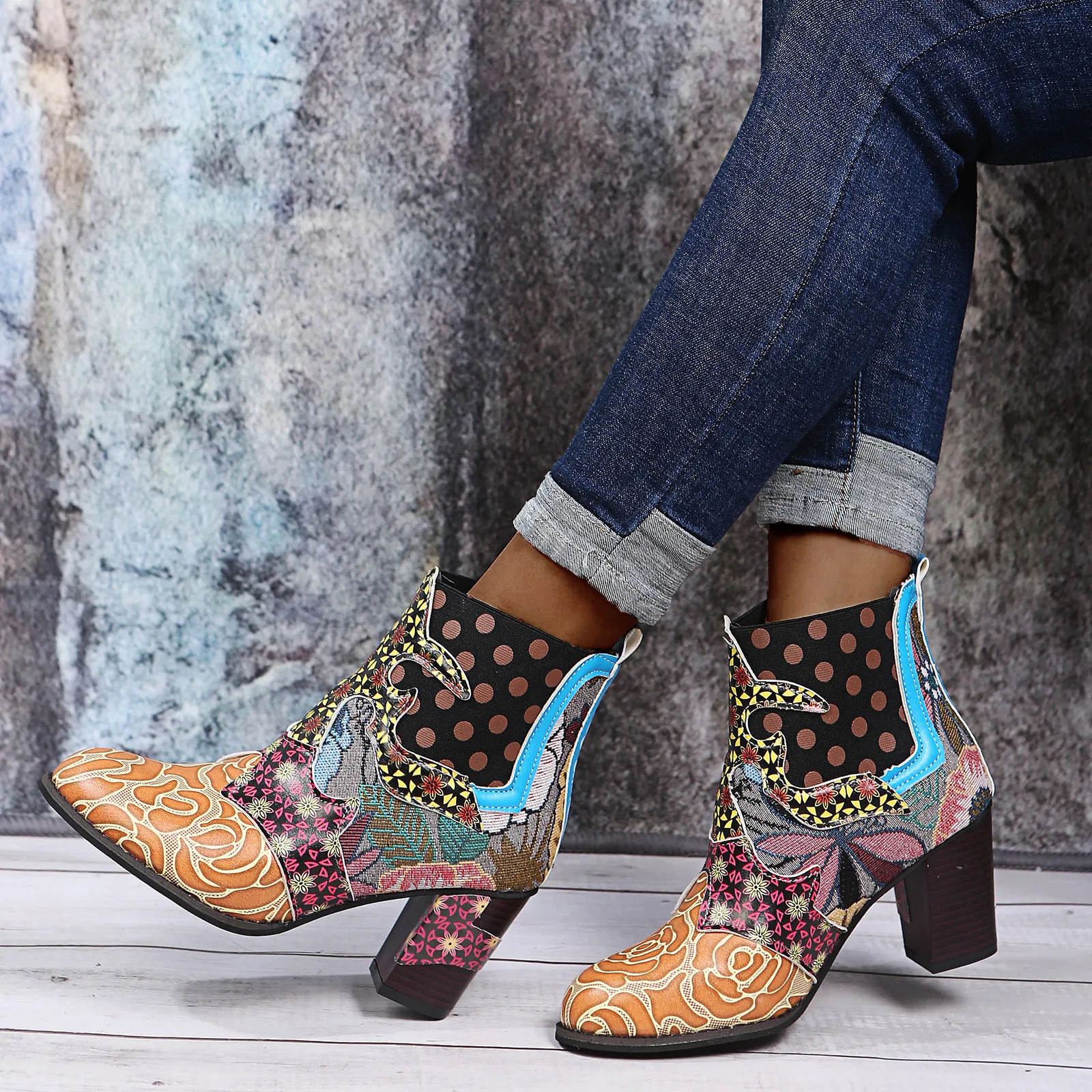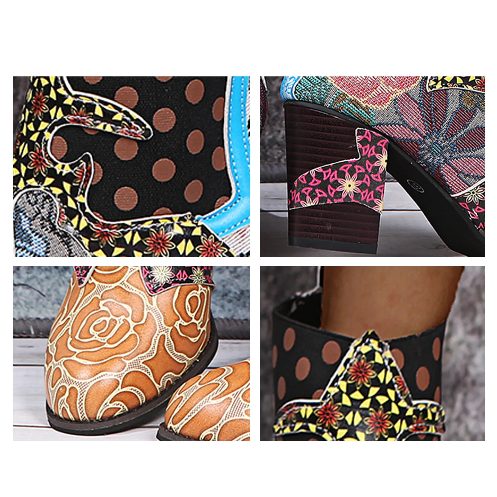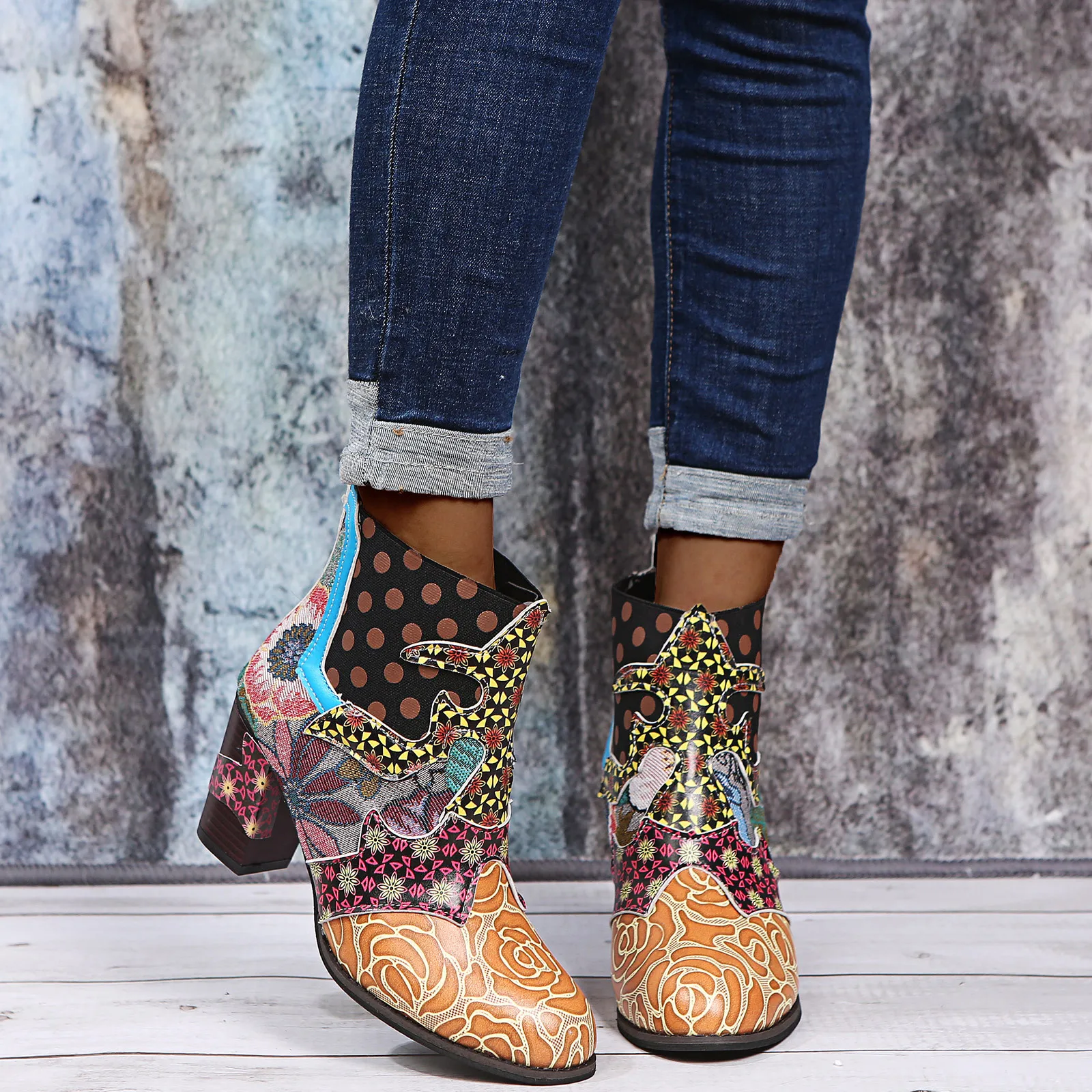 Женские элегантные стильные сапоги, кожаные сапоги с цветочным принтом и круглым носком, на шнуровке, короткие сапоги на молнии, Botas Mujer 2021