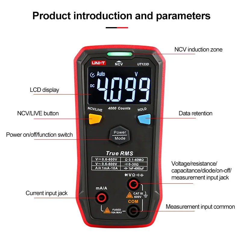 Цифровой мини-мультиметр UT123 UT123D с автоматическим диапазоном, ...