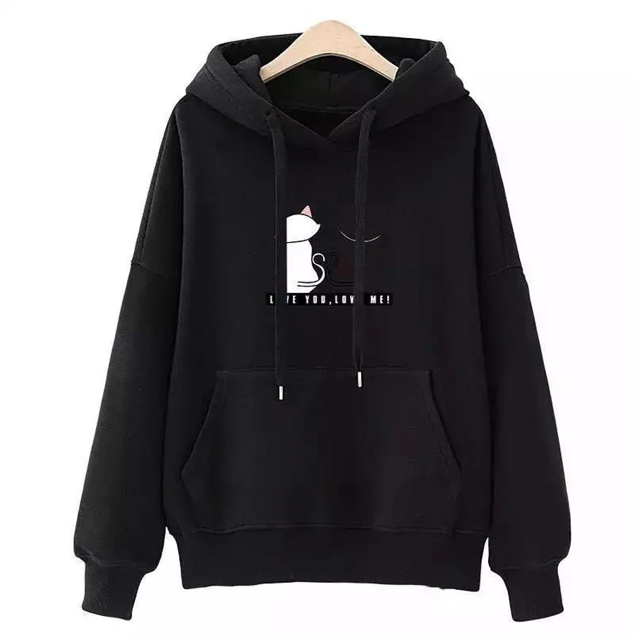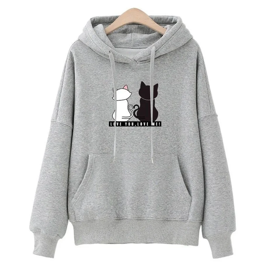 Женская уличная одежда, толстовки, свитшот, осенние толстовки с длинным рукавом, худи в стиле Харадзюку, толстовка с милым принтом кота, Женская толстовка